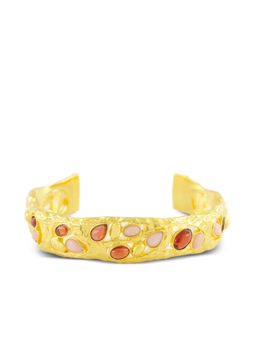 Подробнее о товаре: - золотистый - эффект чеканки - гранат и опал овальной огранки огранки и огранки «груша» - дизайн без застежки - Повседневное использование и воздействие внешних факторов могут уменьшить блеск драгоценных камней и поверхностей, покрытых золотом.