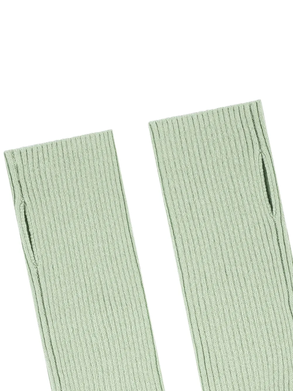 Миндально-зеленый укороченный вязаный топ в рубчик с прорезью для большого пальца