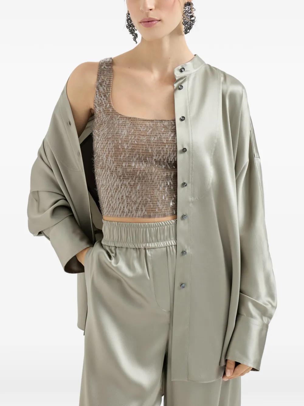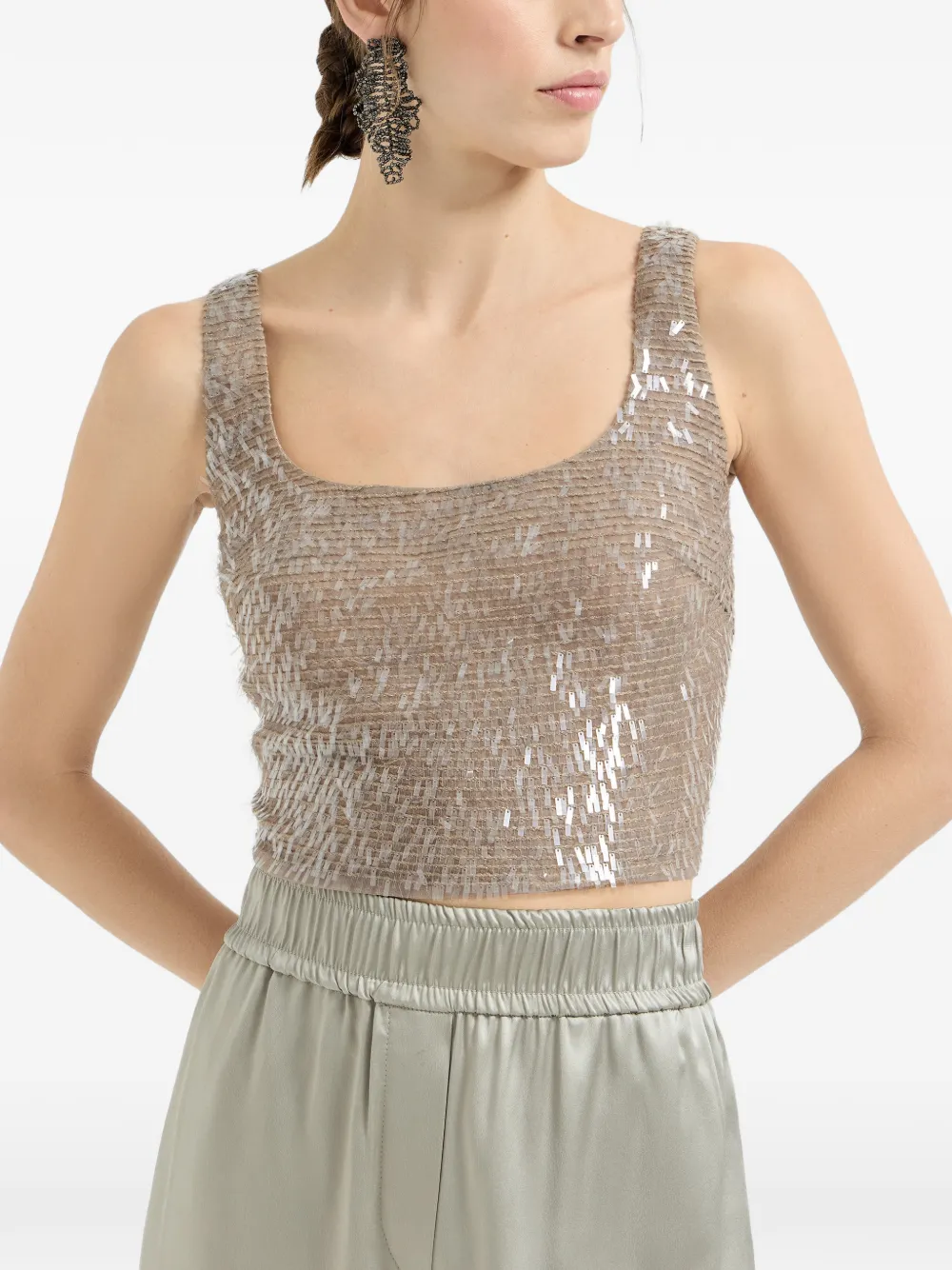 Укороченный топ с вышивкой Brunello Cucinelli, бежевый