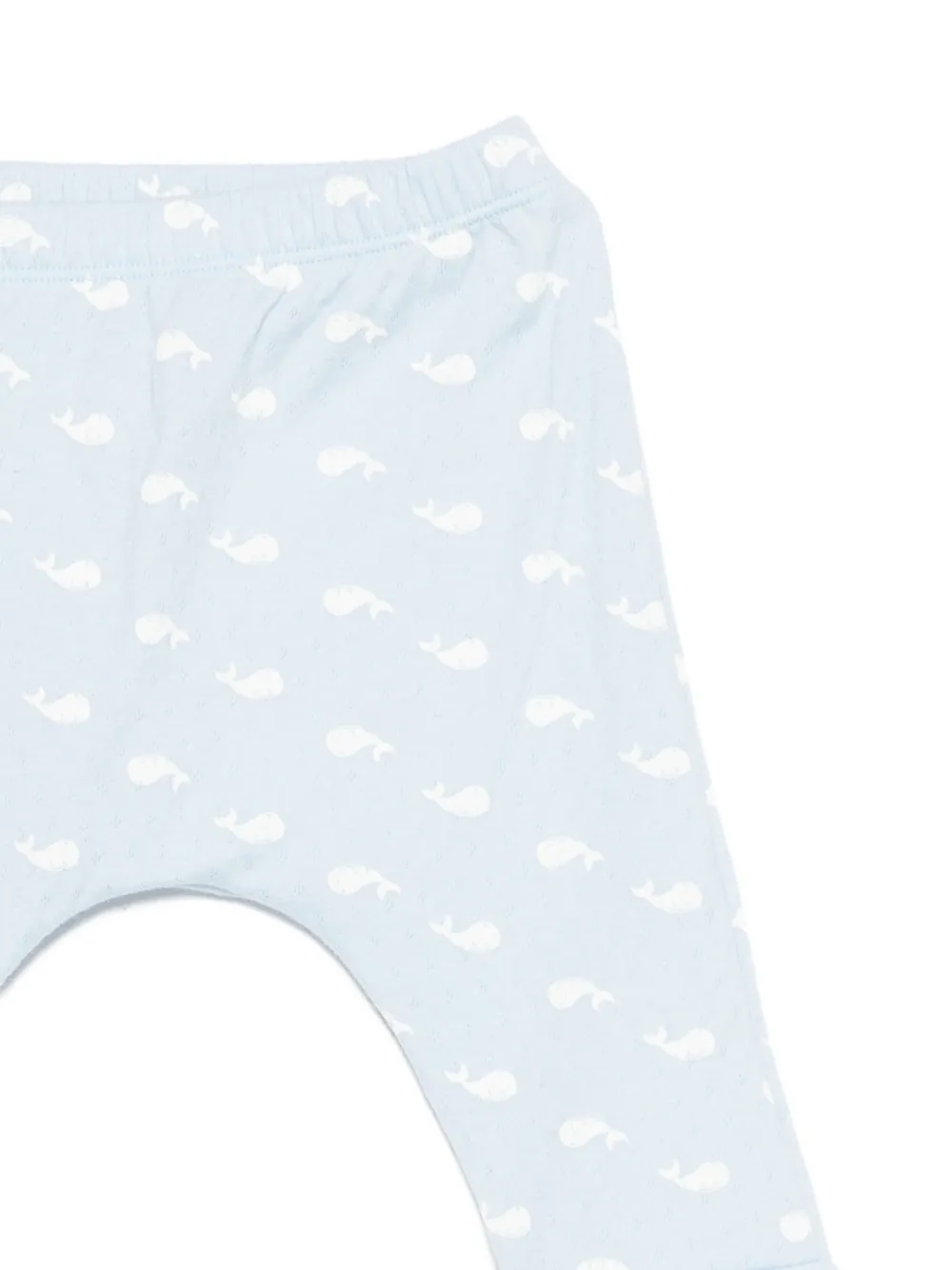 Светло-голубой комплект из двух предметов с принтом китов: эластичный пояс, длинные рукава, запах спереди, бант