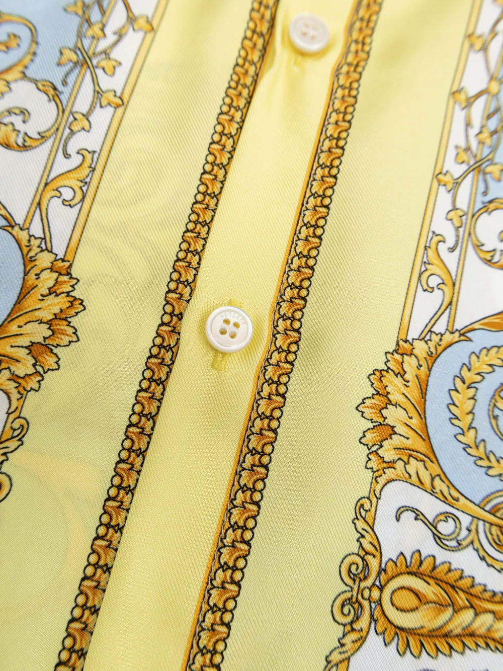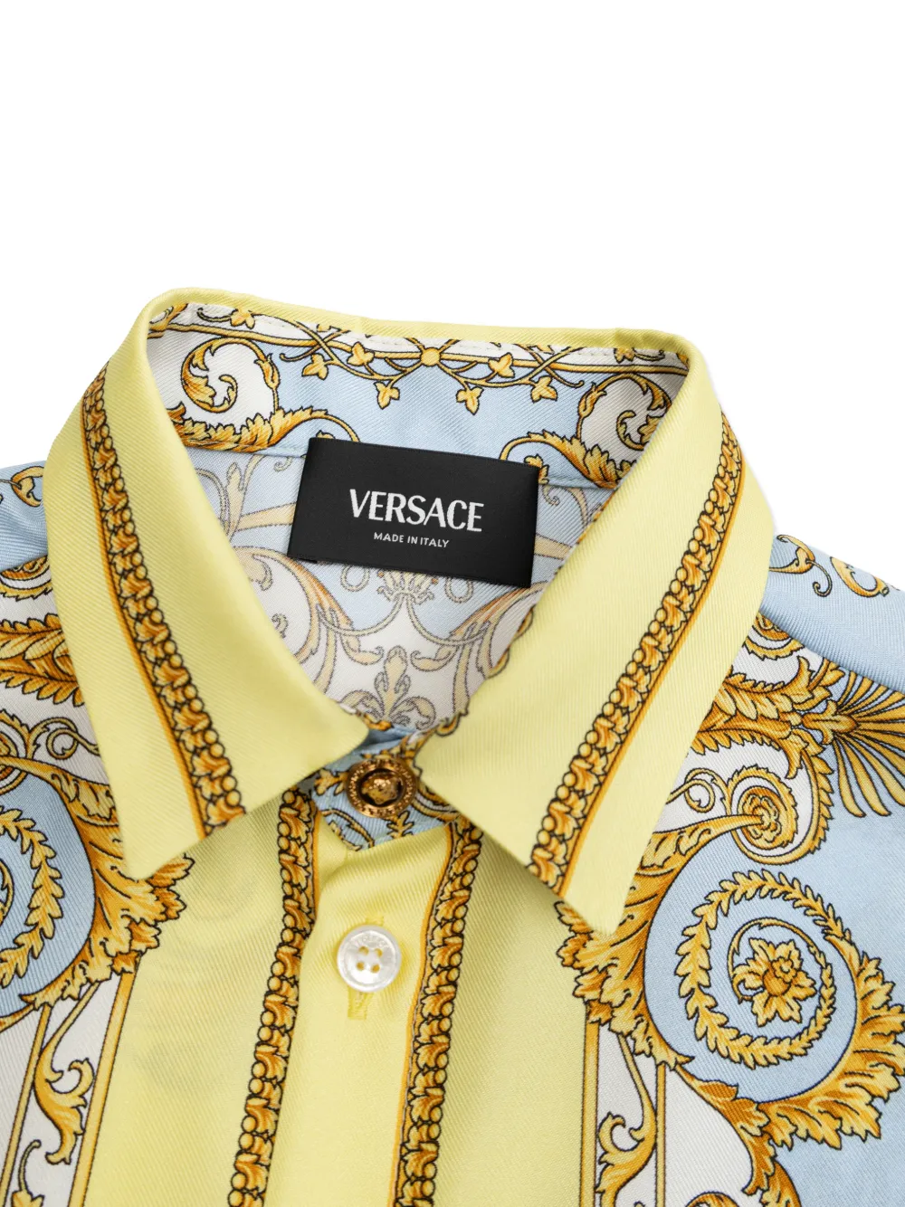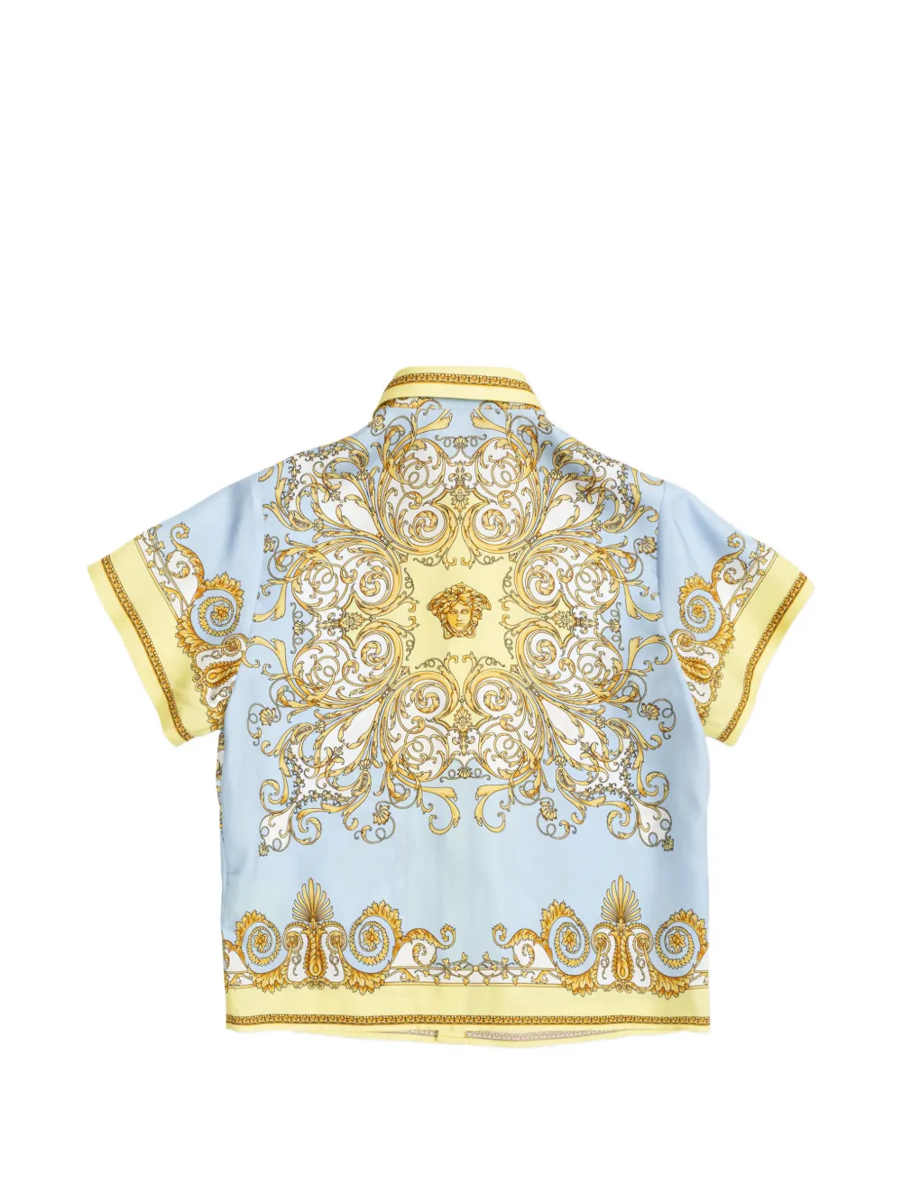 Синяя и желтая барочный принт, застежка на пуговицы, короткие рукава, классический воротник, тональная строчка
