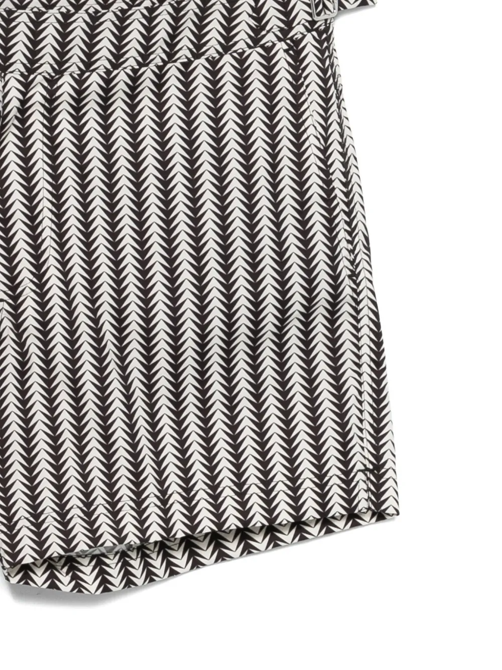 Белый и черный рисунок «елочка», боковые застежки, боковые диагональные карманы.