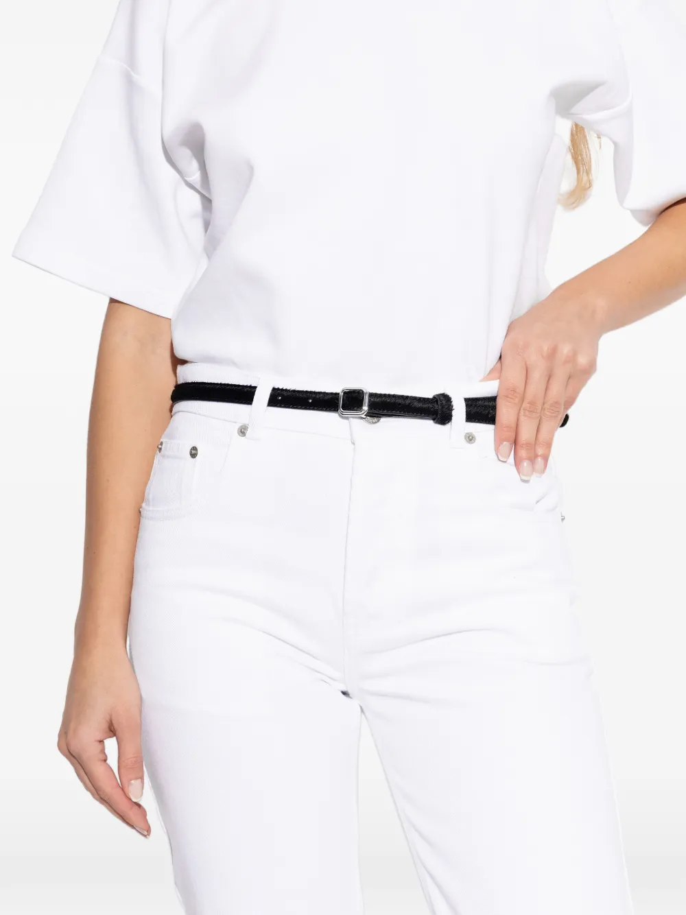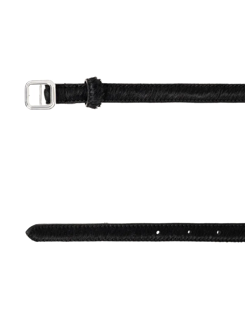 Черный телячий мех, серебристая пряжка, застежка на шпильку