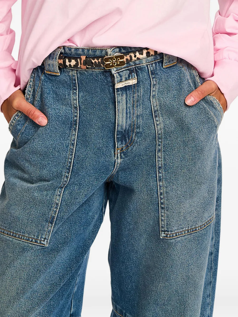 Светло-бежевый леопардовый принт, зернистая текстура, регулируемая посадка, логотип