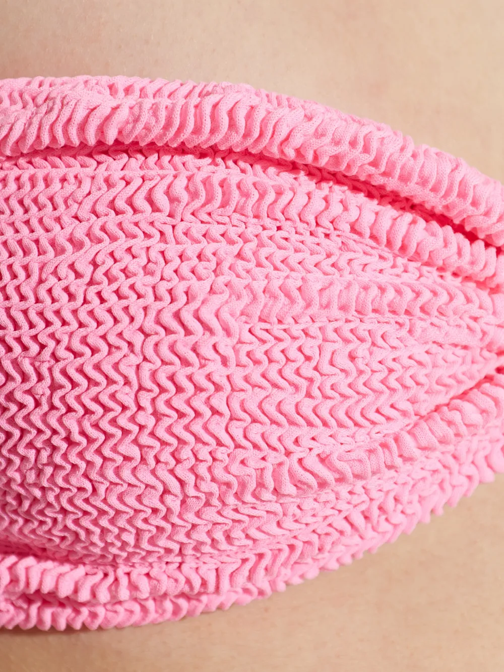 Двойка пузырчато-розового цвета с текстурированной отделкой, сборками и бантом.