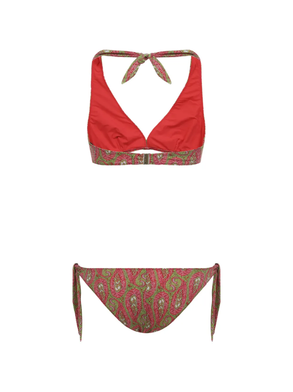 Красный топ-треугольник с рисунком "пейсли", завязками и чашечками