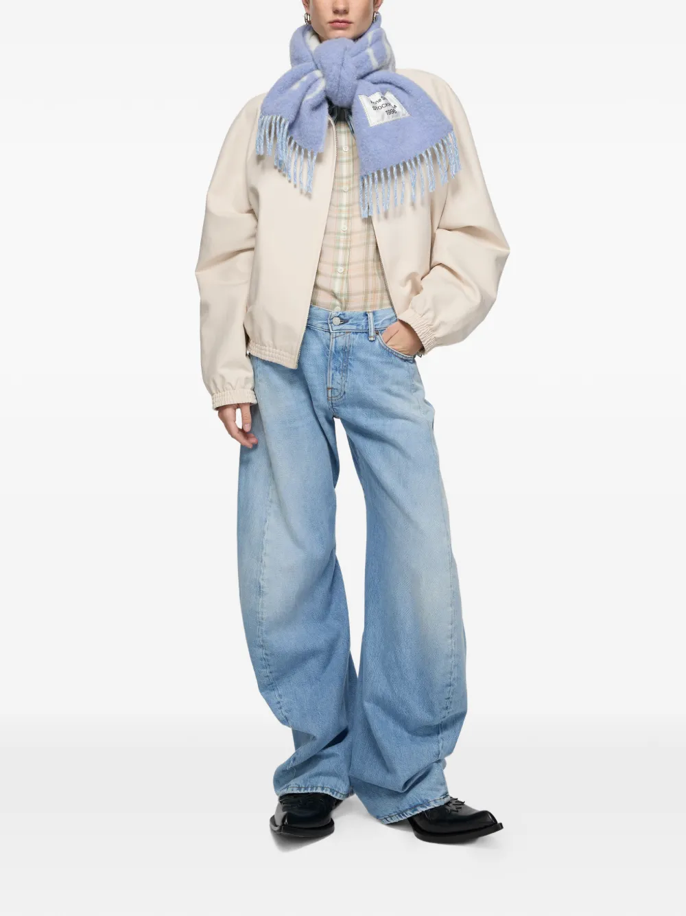 Шарф с логотипом и бахромой Acne Studios, синий