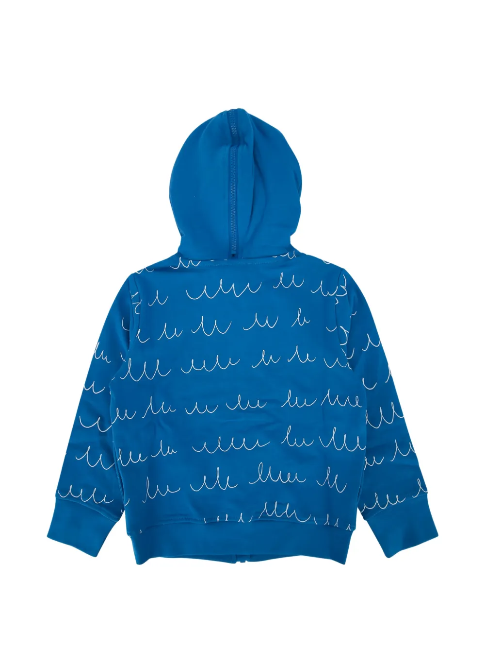 Синий и белый худи на молнии с графическим принтом, длинными рукавами и ребристым подолом