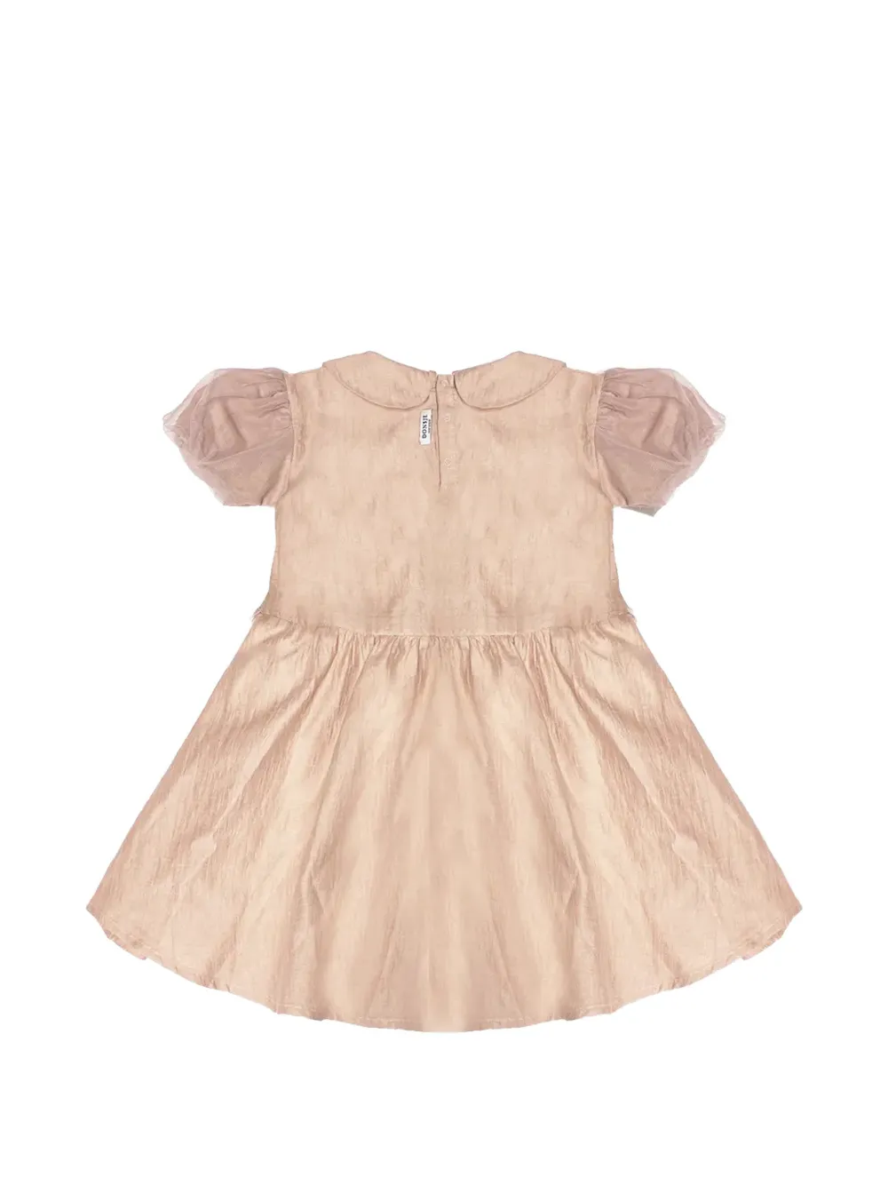 Розовая юбка со сборками, воротник Питер Пэн, короткие пышные рукава, застежка на пуговицах сзади
