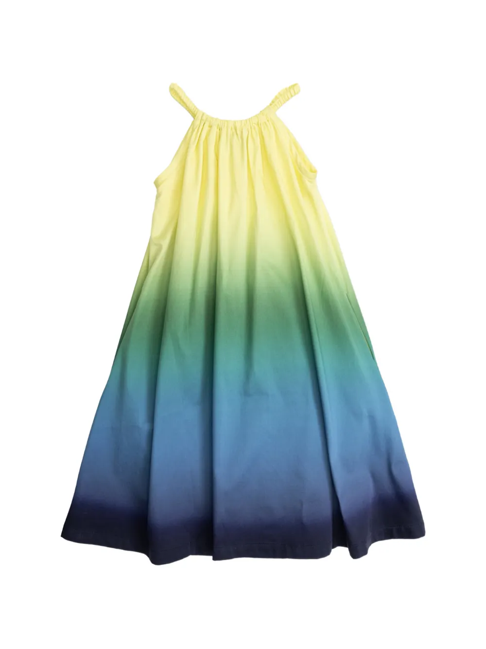 Желто-зелено-синий эффект омбре, без рукавов, присборенный вырез