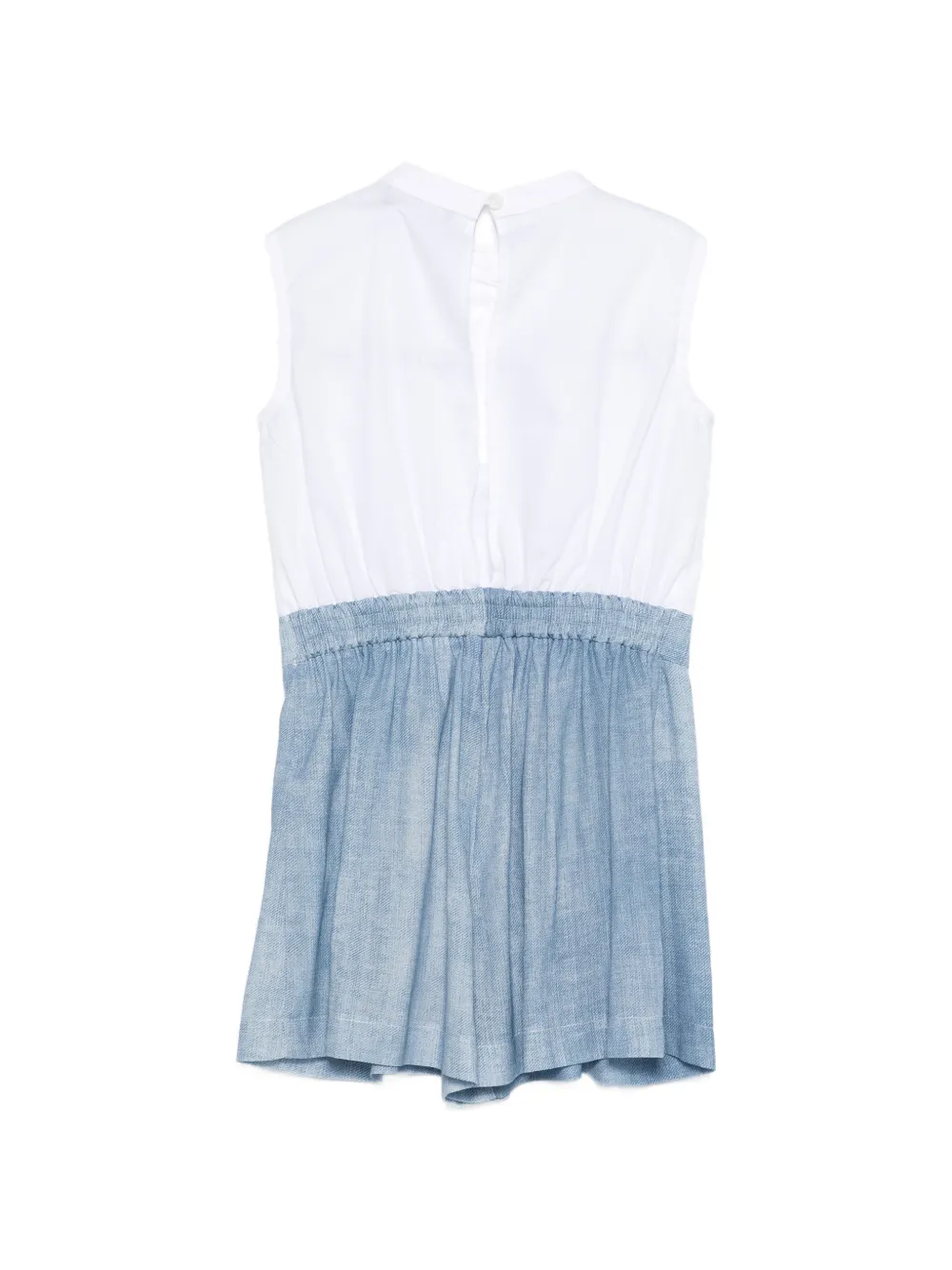 Белое платье с вставками, застежкой на пуговицы, без рукавов, присборенной юбкой и нашивкой-логотипом