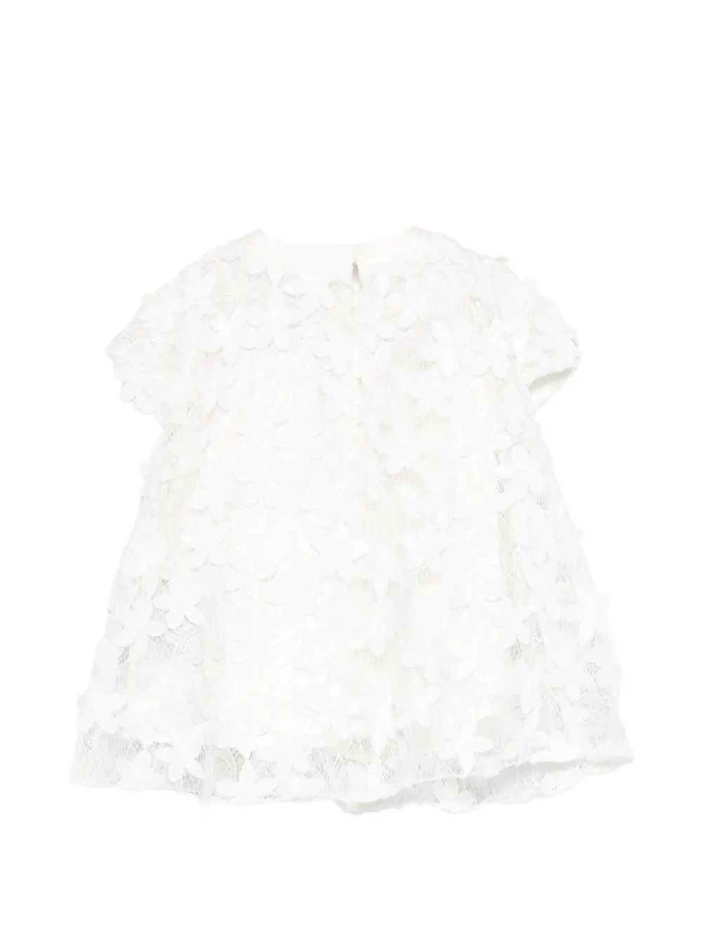 Белый цветочный узор, короткие рукава, круглый вырез, застежка на пуговицы сзади