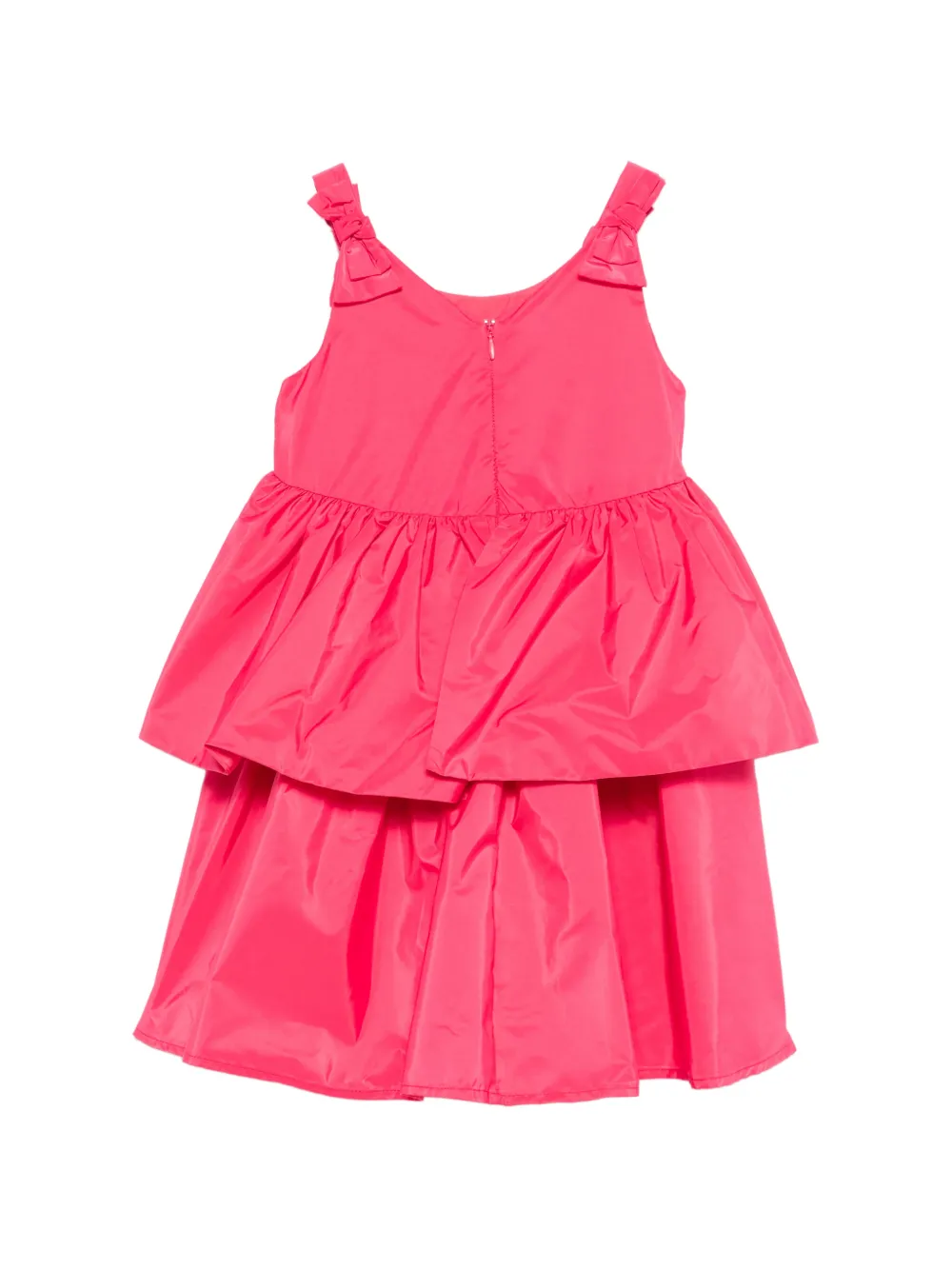 Фуксия, многоярусный дизайн, бретели, бант, застежка-молния