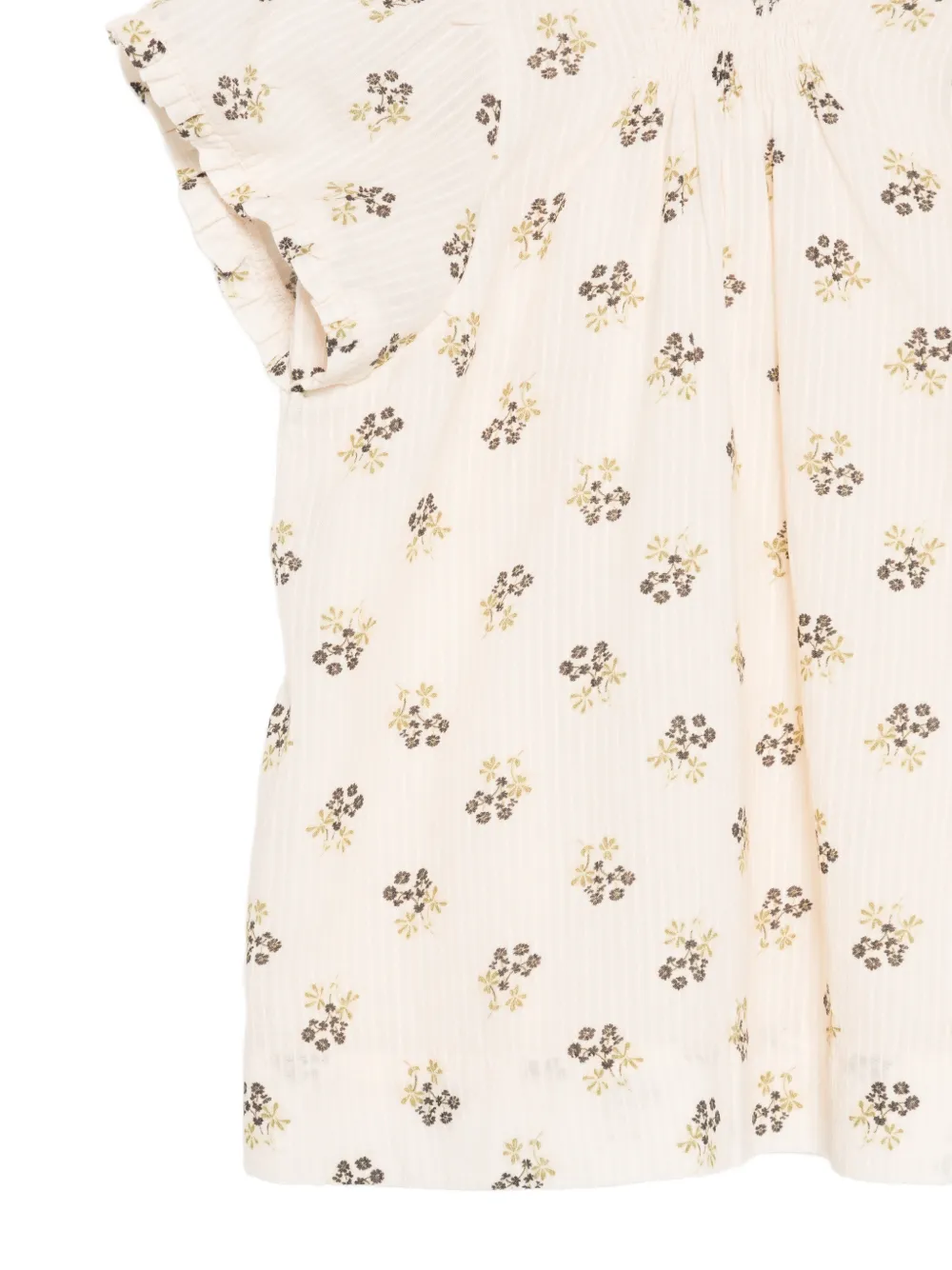 Кремовая футболка с цветочным принтом, оборками на рукавах, короткими рукавами и круглым вырезом