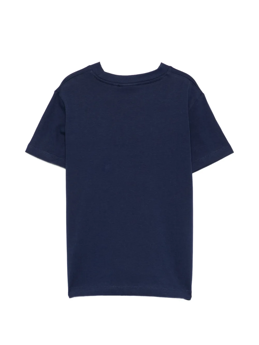 Темно-синяя футболка с круглым вырезом, короткими рукавами и принтом-логотипом