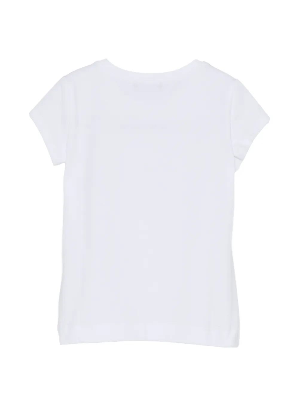 Белая футболка с круглым вырезом, короткими рукавами и однотонным логотипом