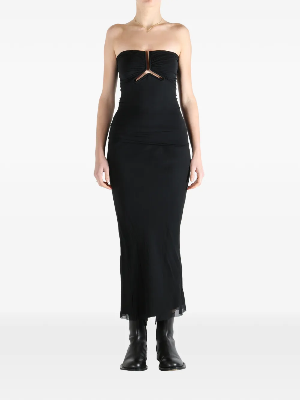 Черный бюстье без бретелек с вырезом и драпировкой, в виде топа-трубы