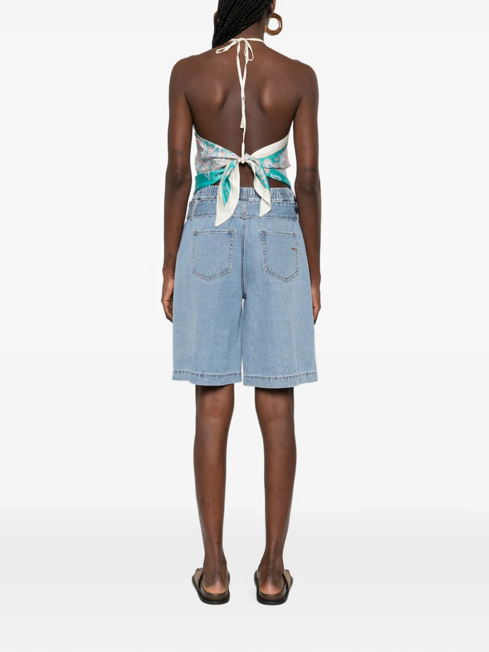 Синий разноцветный топ с принтом "пейсли", завязками на шее и самостоятельной фиксацией
