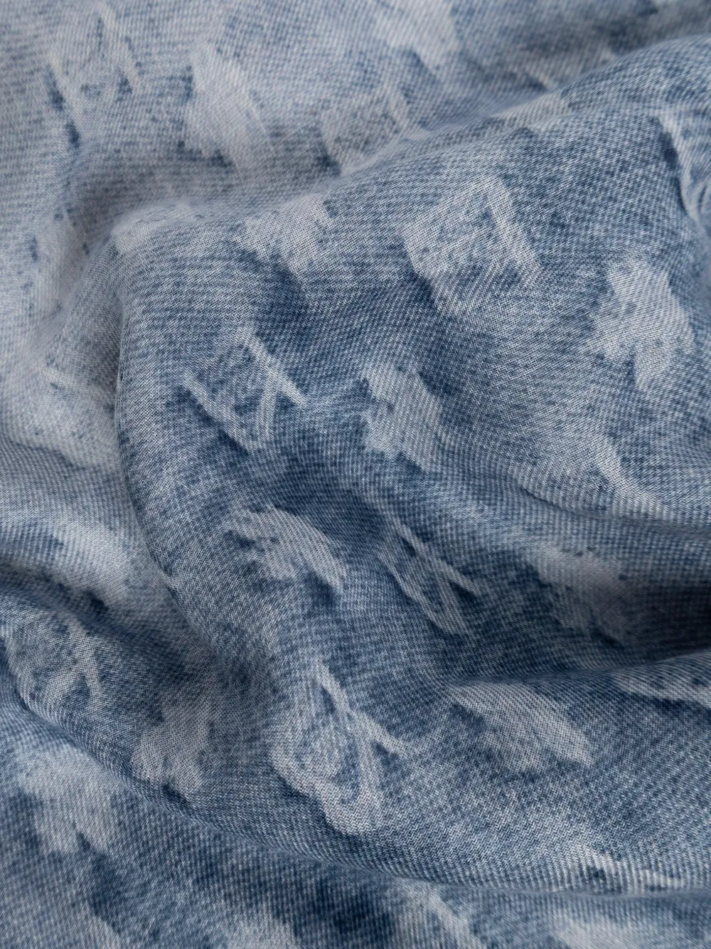 Светло-голубой с узором по всей поверхности, с бахромчатым краем