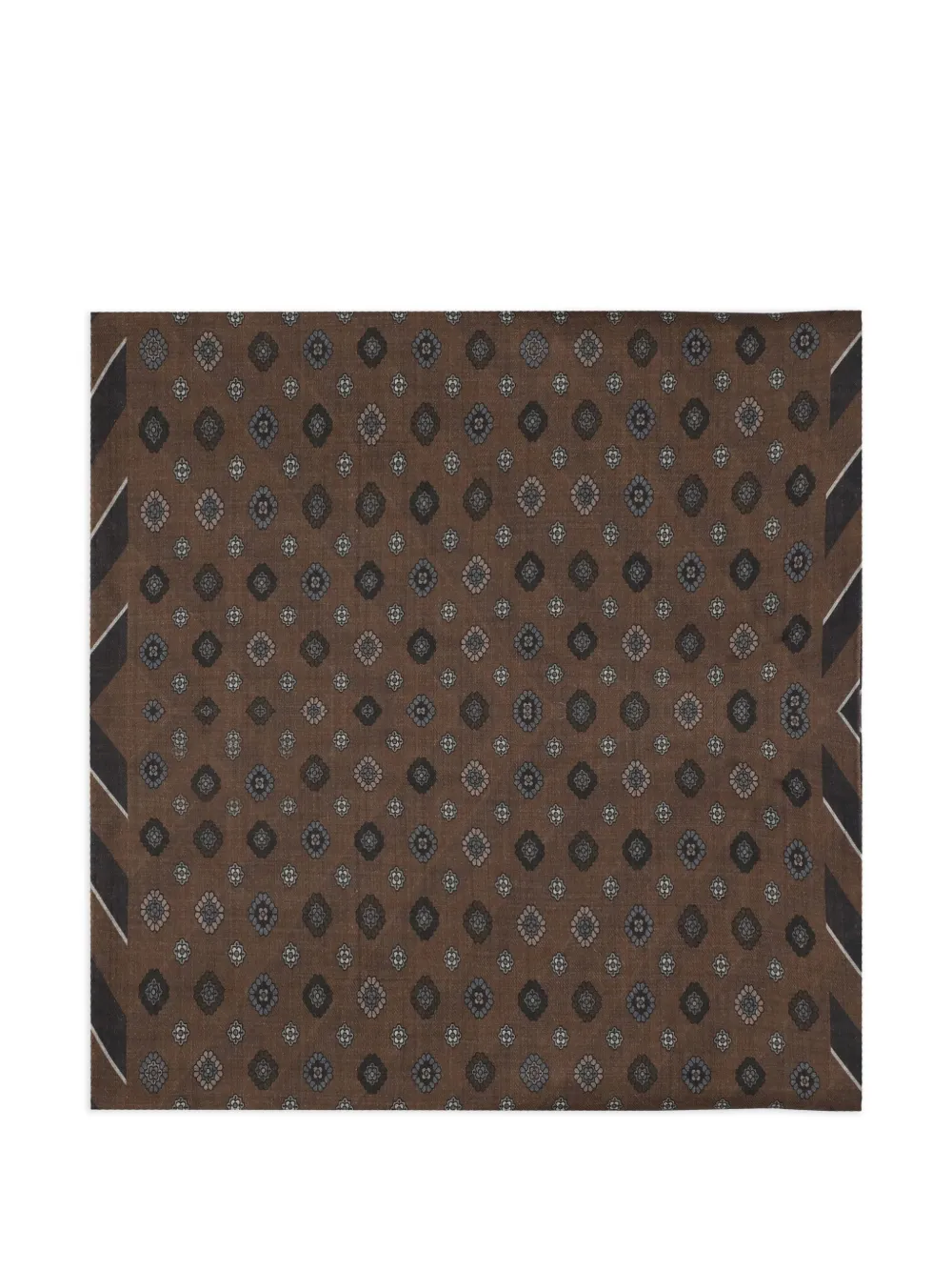 Коричневый с цветочным принтом, с полосатой отделкой и бахромой по краям