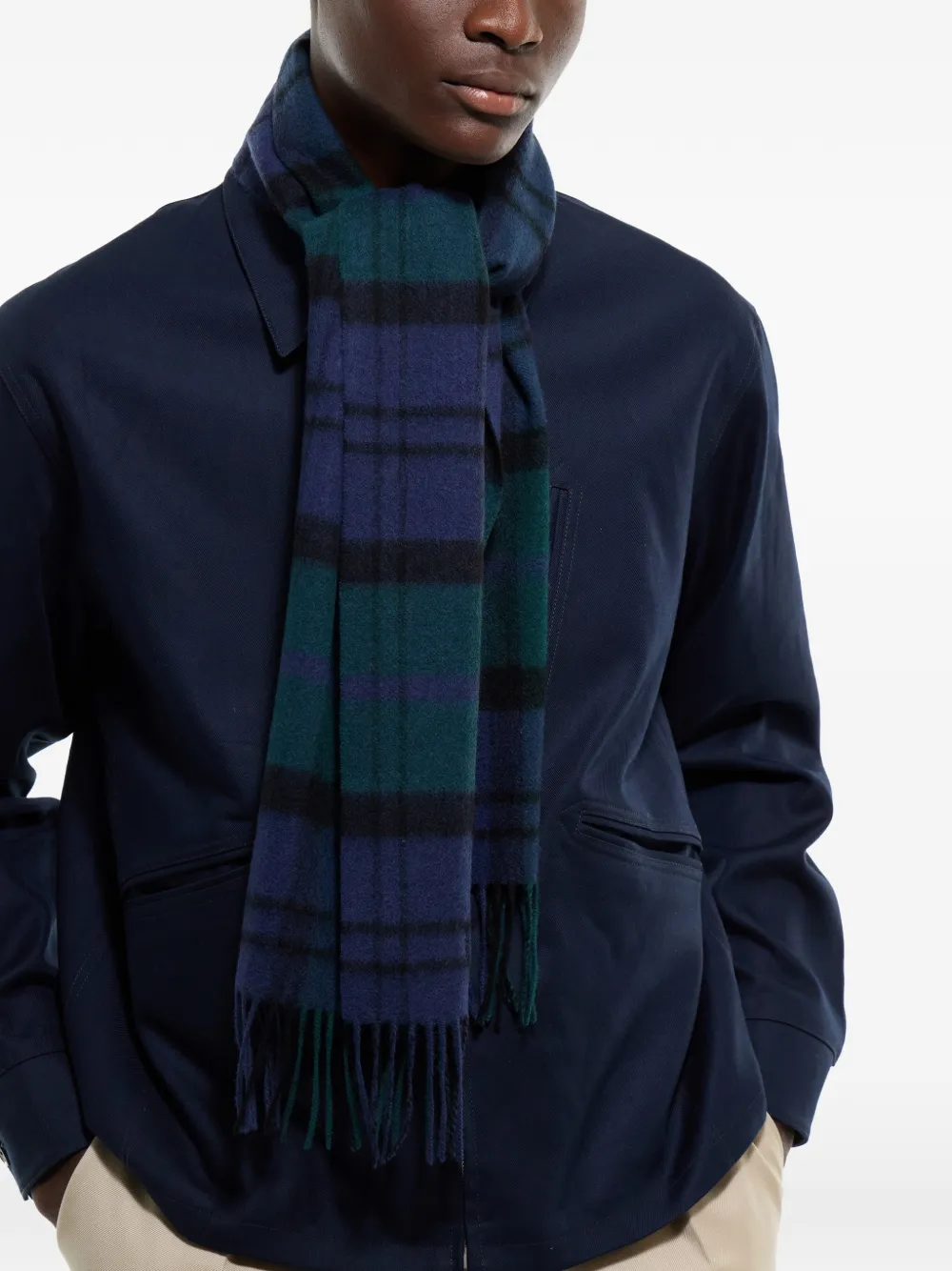 Клетчатый шарф с бахромой Fursac, синий 24 580₽
