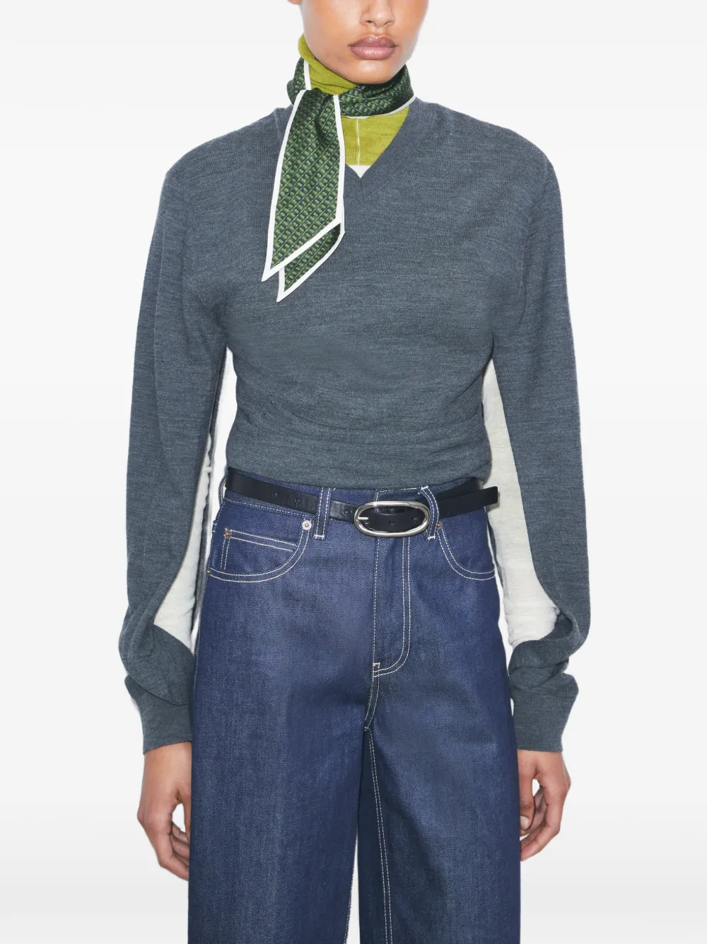 Зеленый шелк с принтом инициалов, контрастная отделка, зауженные концы