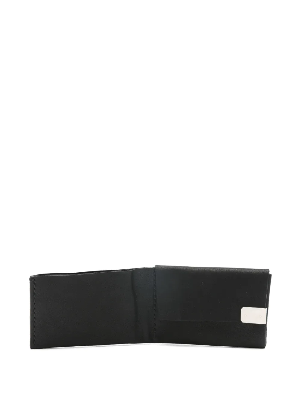 Черный цвет, эффект чеканки, отделение для купюр, слоты для карт, открытые карманы