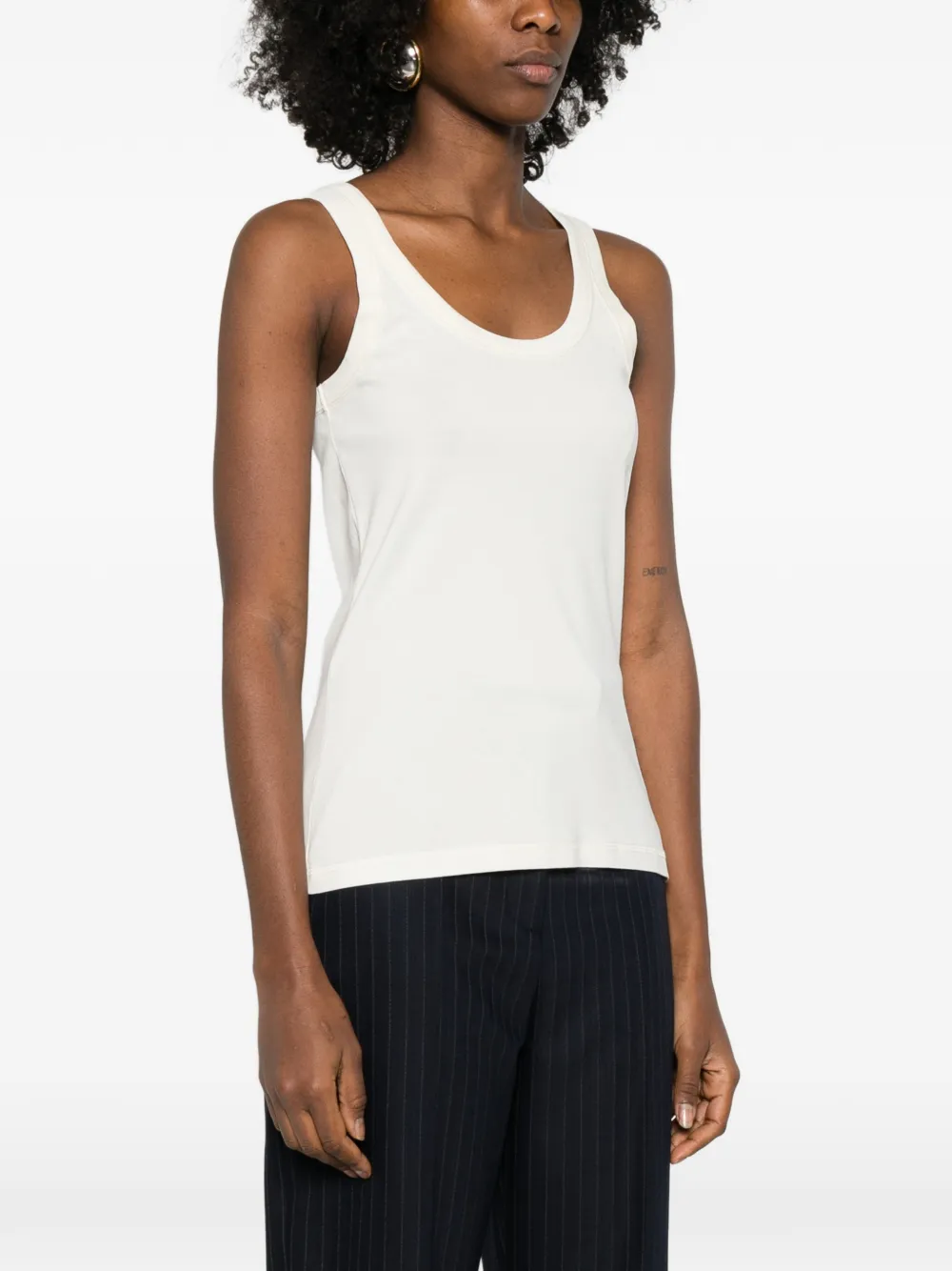 Светло-кремовый топ без рукавов в рубчик с круглым вырезом