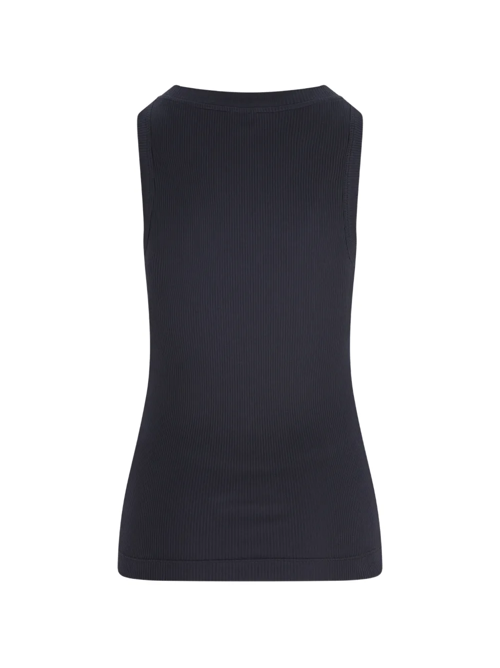 Черный вязаный топ в рубчик без рукавов с круглым вырезом