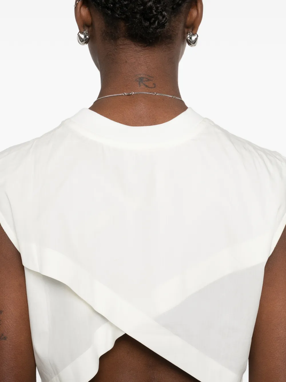 Белый топ без рукавов с круглым вырезом и перекрещивающимися лямками на спине