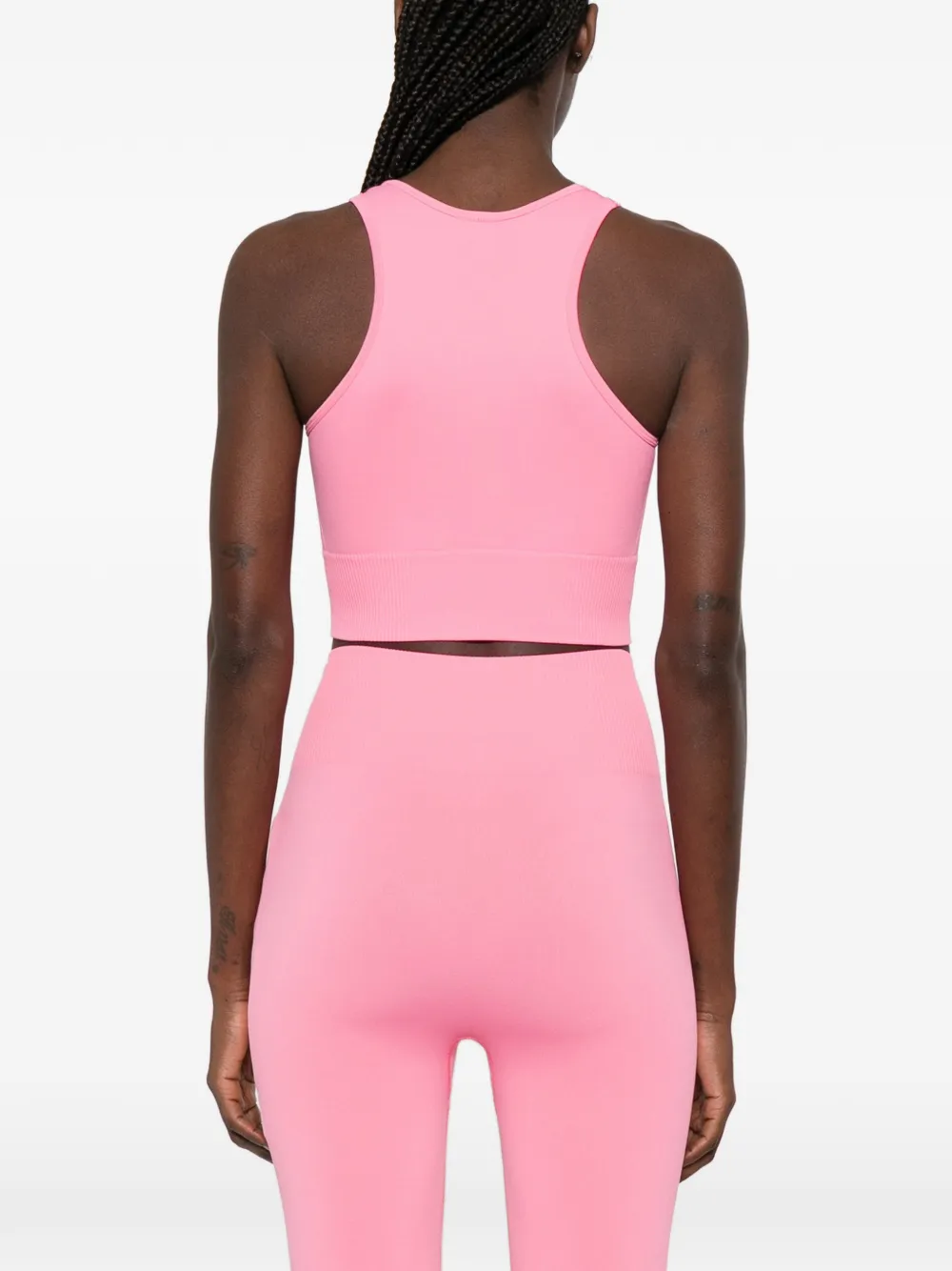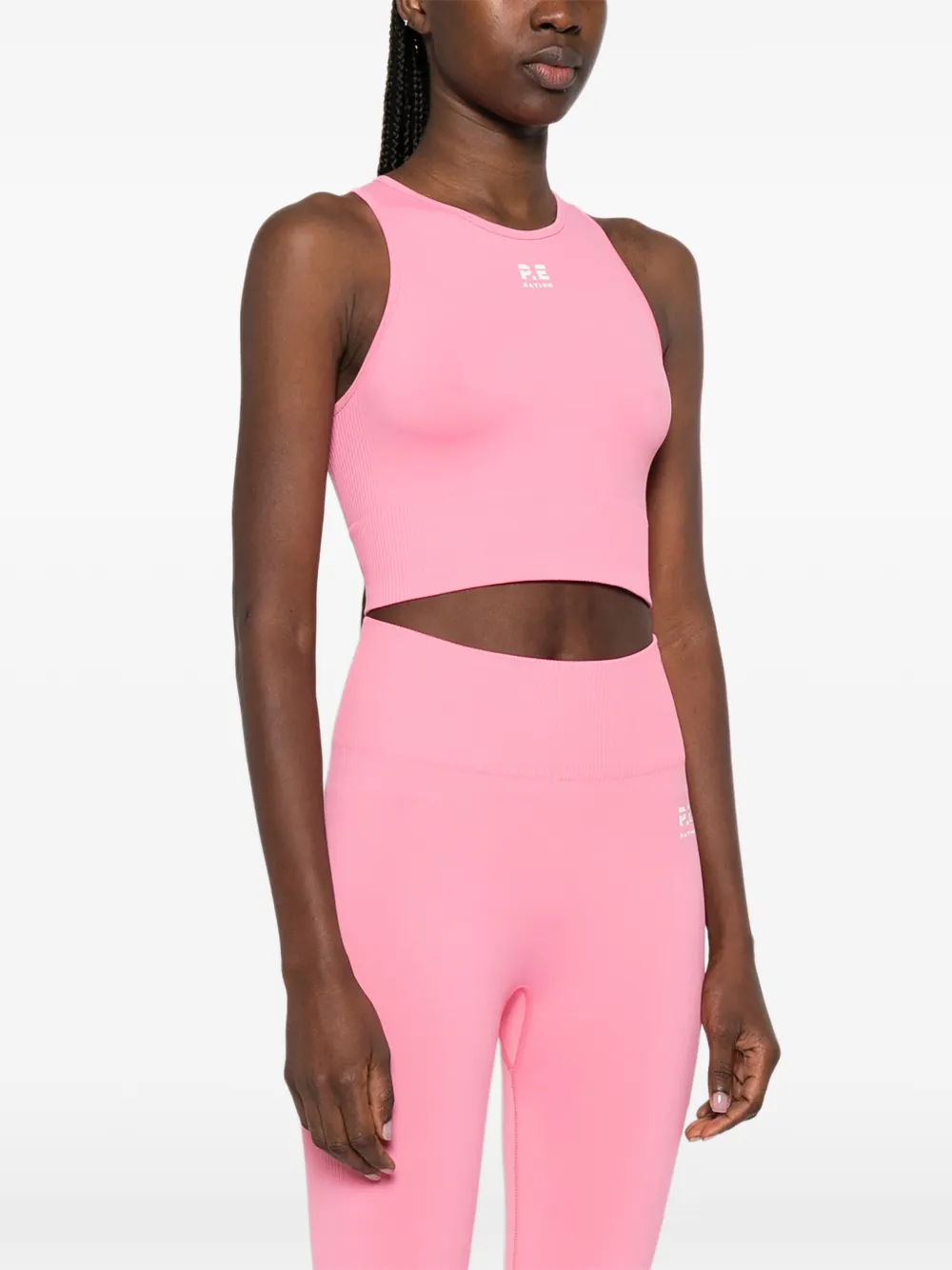 Розовый укороченный ребристый топ без рукавов с круглым вырезом и логотипом