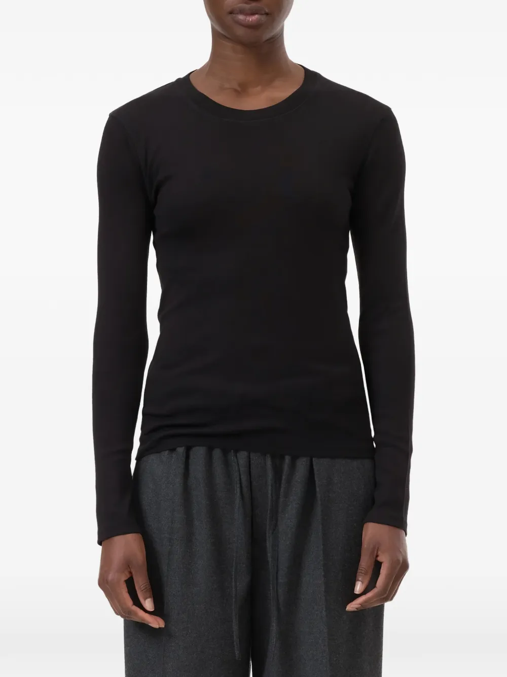 Черная футболка с длинными рукавами и круглым вырезом