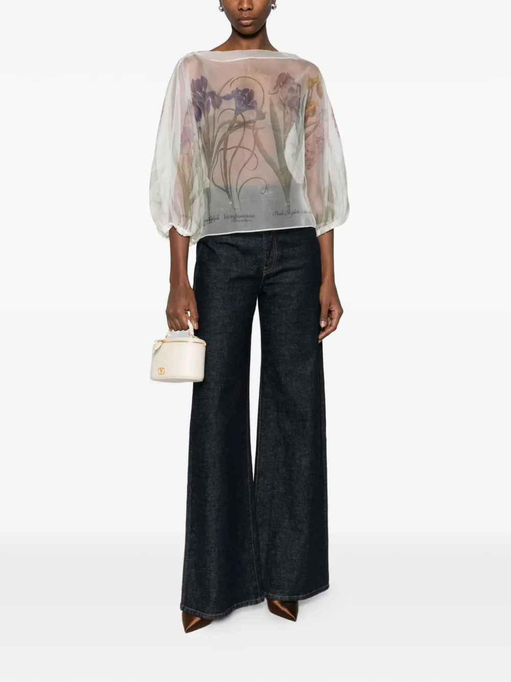 Шелковый топ с цветочным принтом Alberta Ferretti, белый