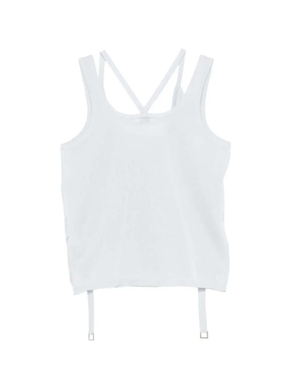 Синий цвет, перфорированные детали, тонкие бретели, вырезы, эластичный материал, отделка