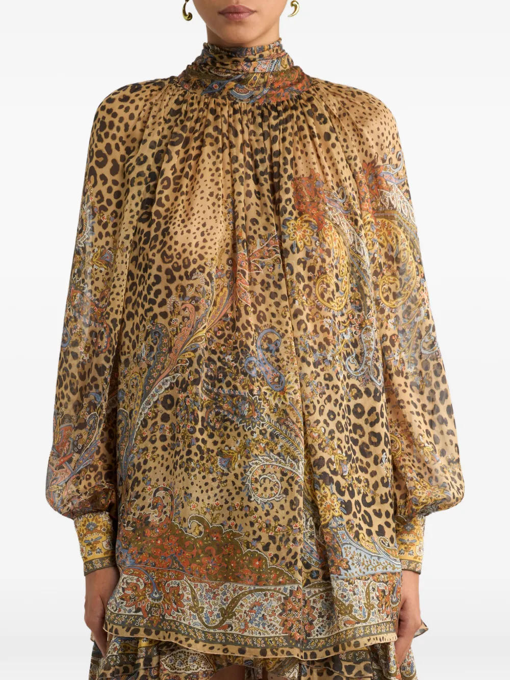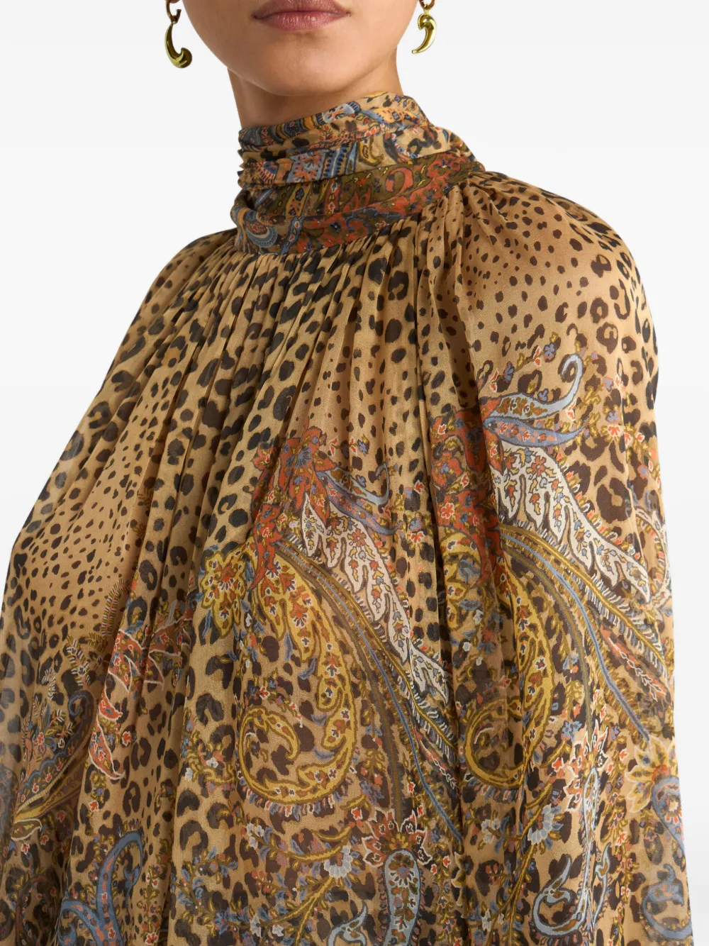 Шелковый топ с принтом пейсли Etro, бежевый