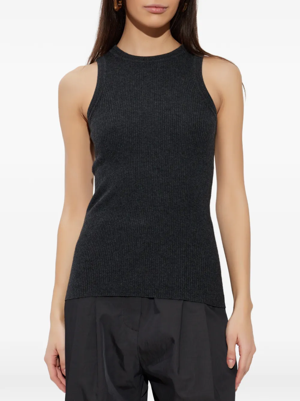Темно-серый рубчатый трикотажный жилет без рукавов
