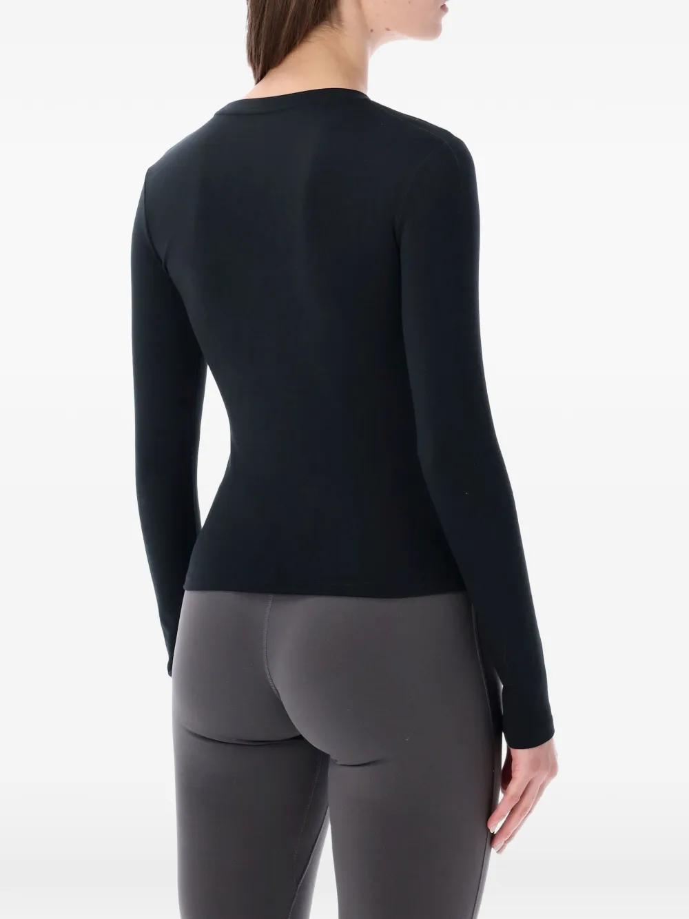 Черная футболка с длинными рукавами, круглым вырезом и логотипом