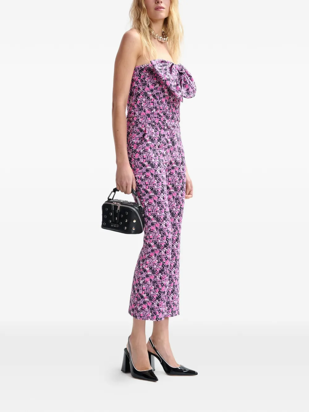 Фиолетовый и розовый бюстье с цветочным принтом и приталенной спинкой на резинке