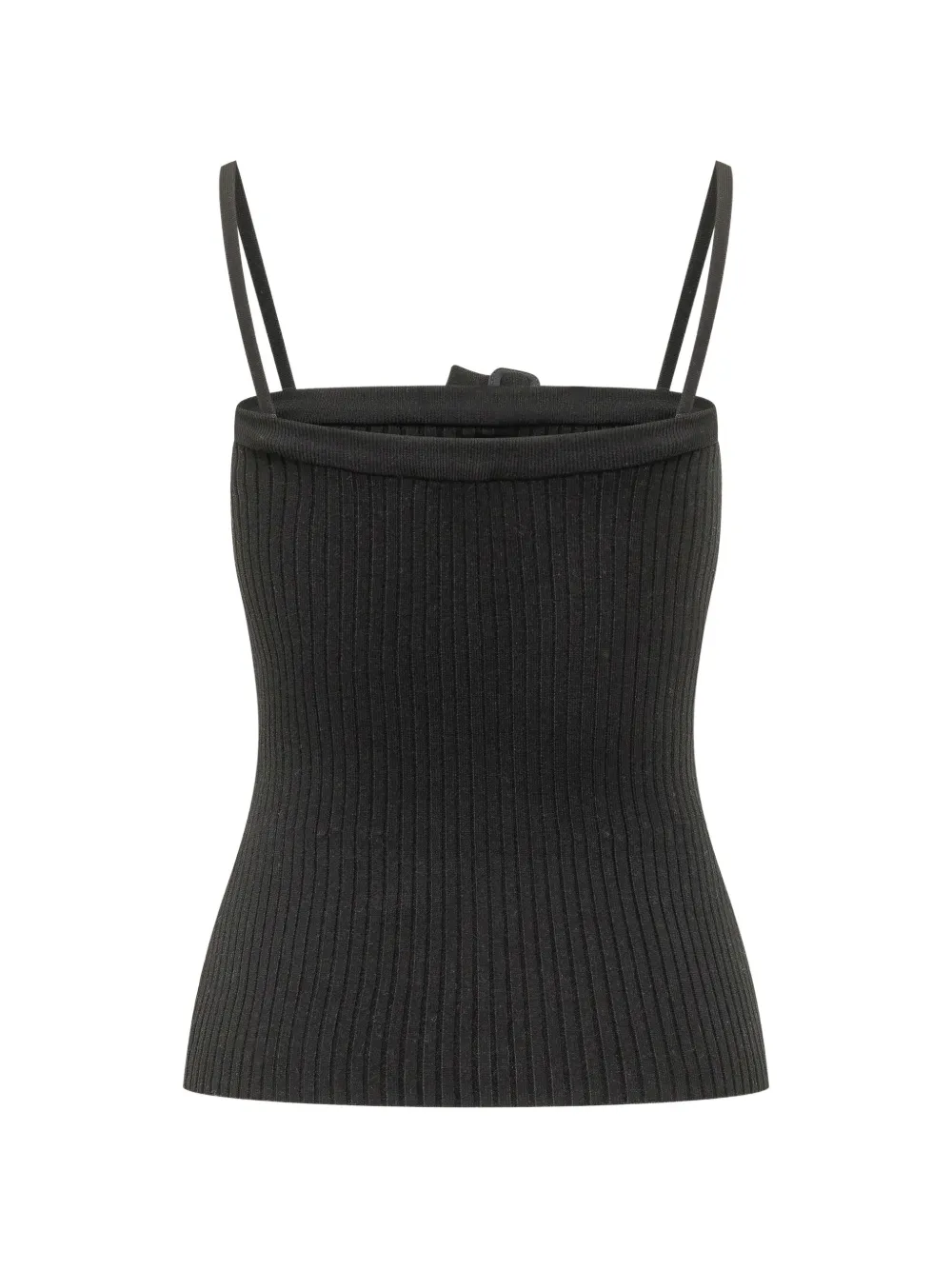 Черный вязаный топ в рубчик на бретелях с пряжками, без рукавов