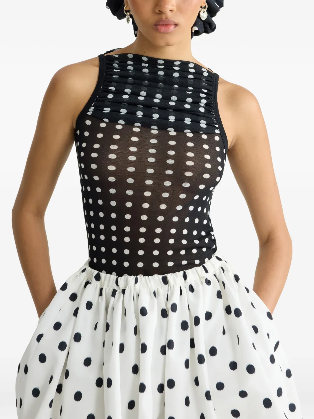 Топ в горох со сборками Patou, черный