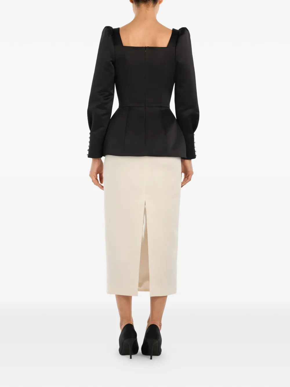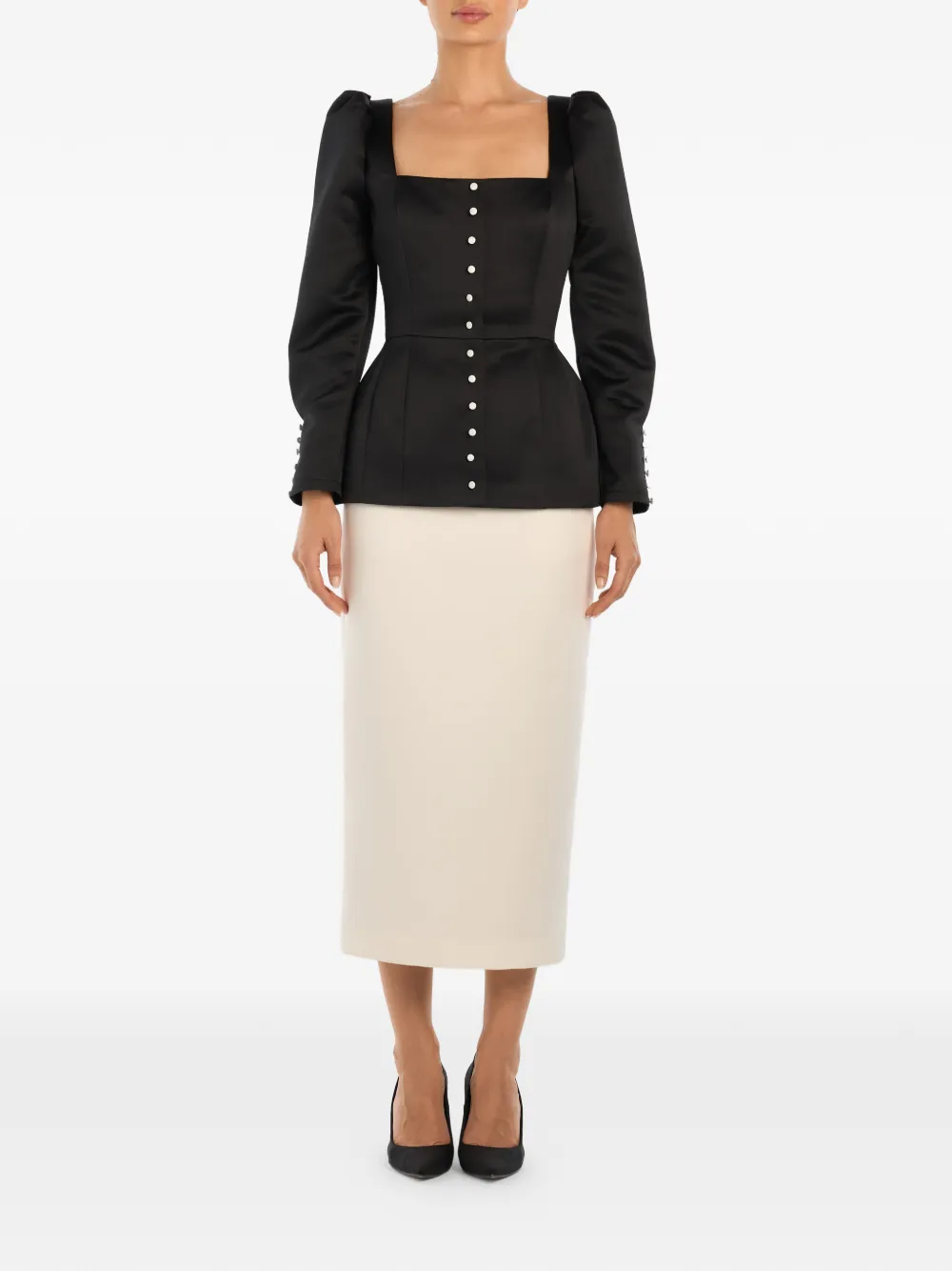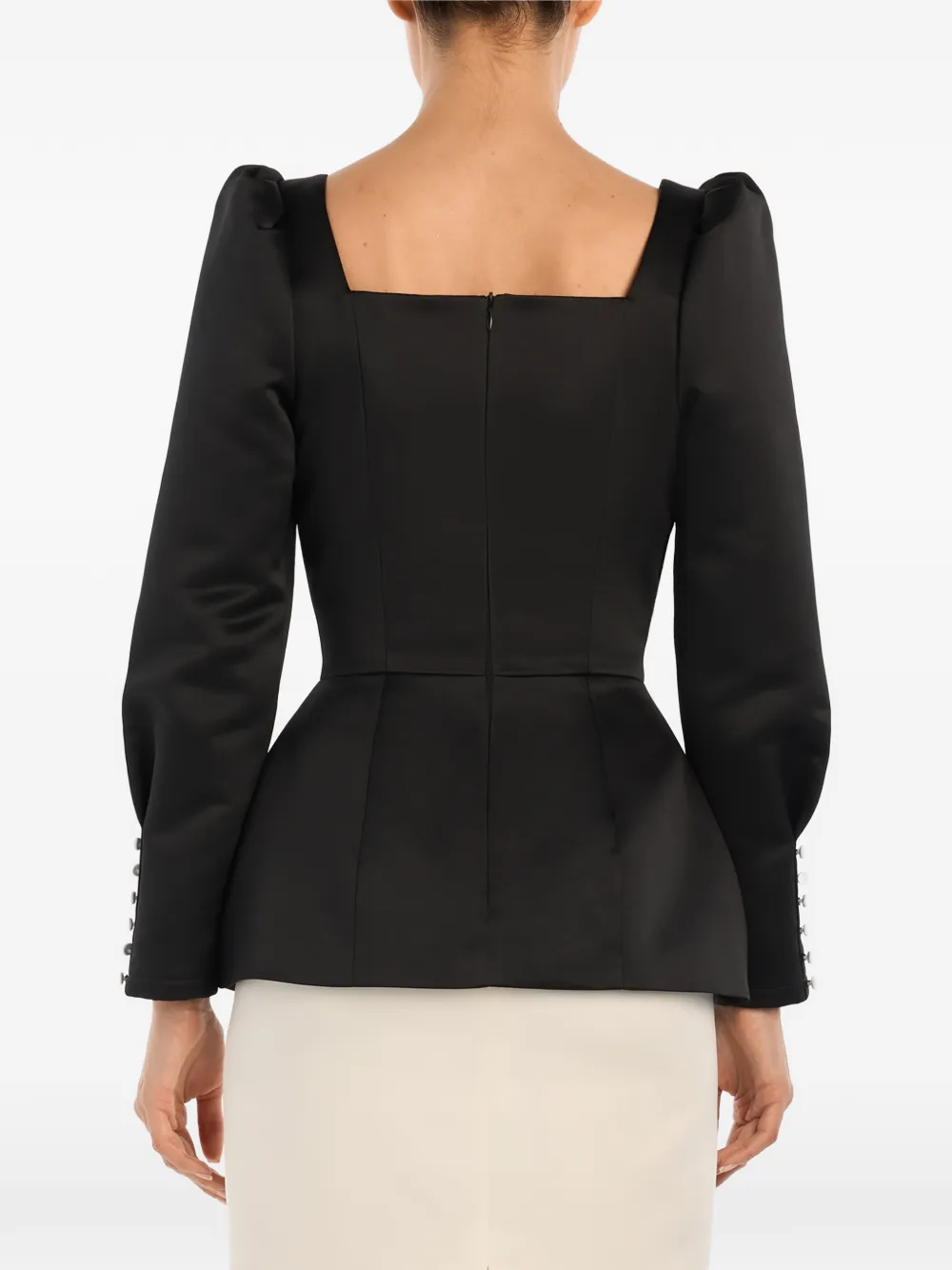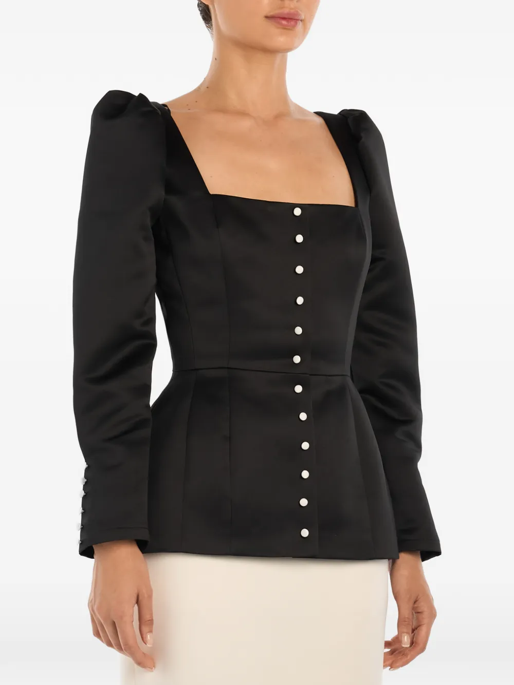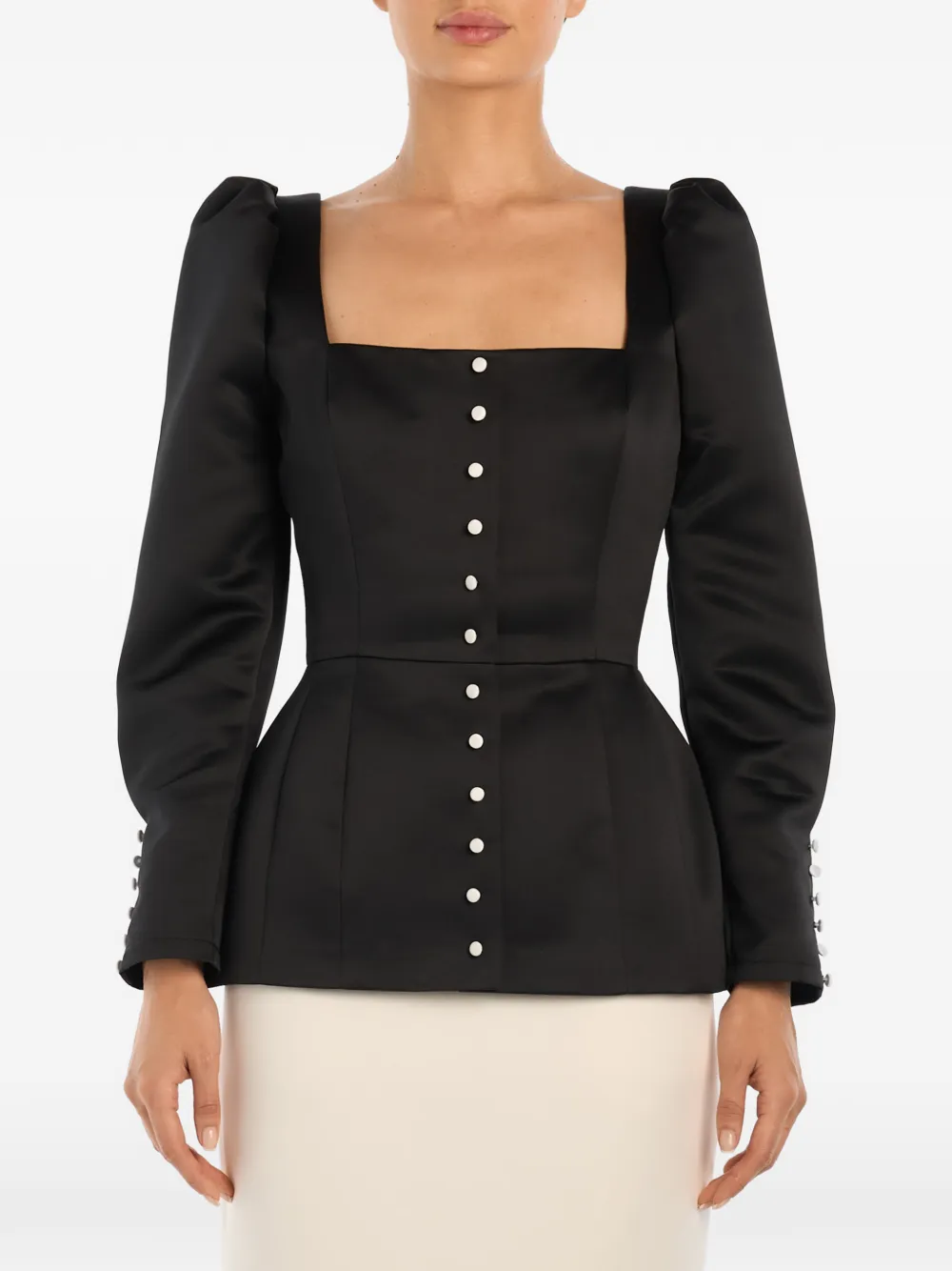 Черный топ с квадратным вырезом, застежкой на пуговицы спереди, длинными рукавами и манжетами на пуговицах