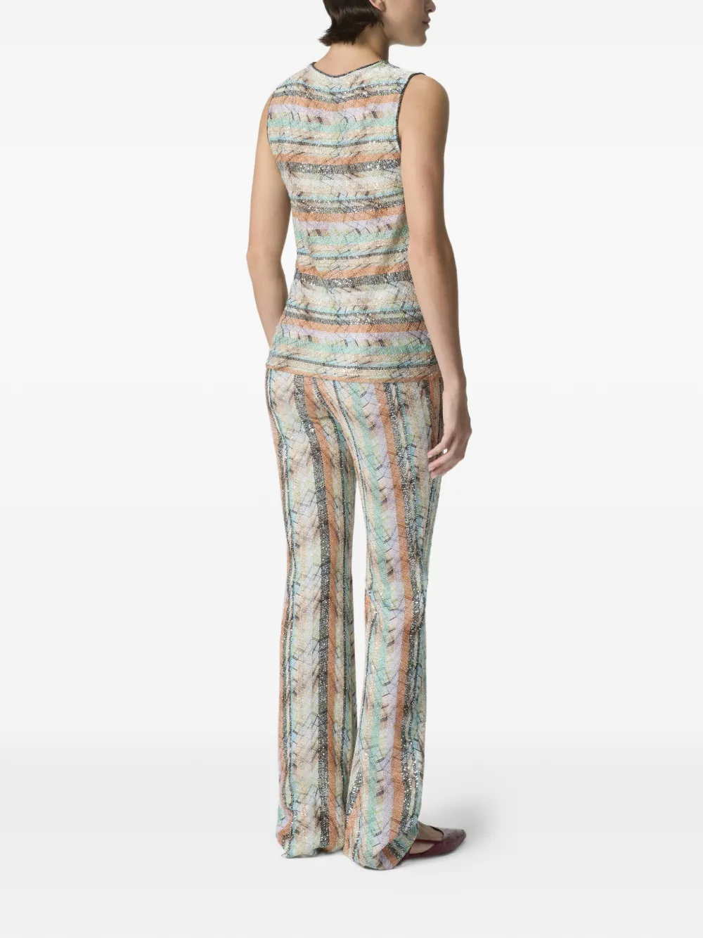 Бежевый, синий и разноцветные горизонтальные полосы, без рукавов, круглый вырез, свободный крой