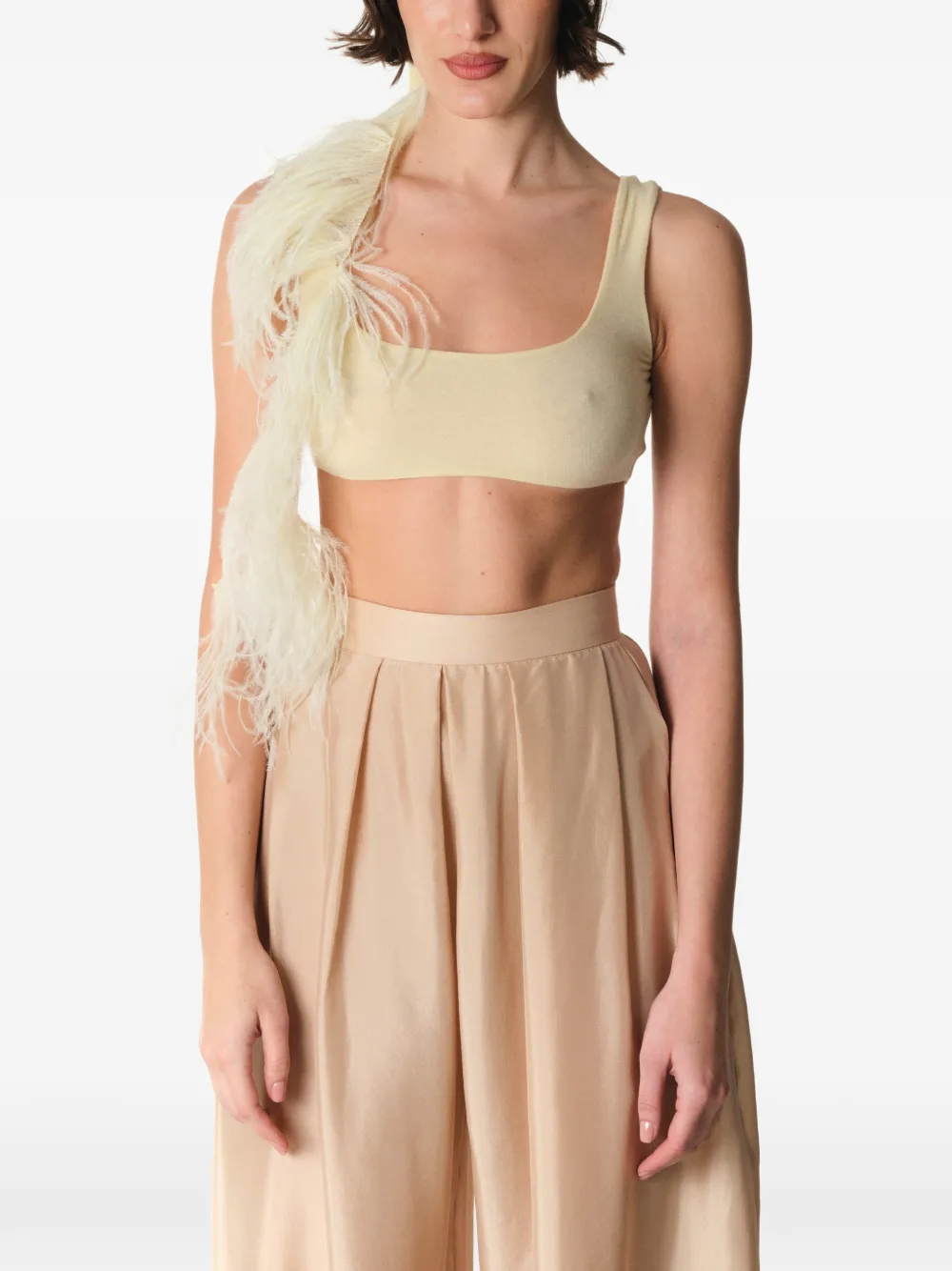 Ванильно-желтый топ без рукавов с квадратным вырезом