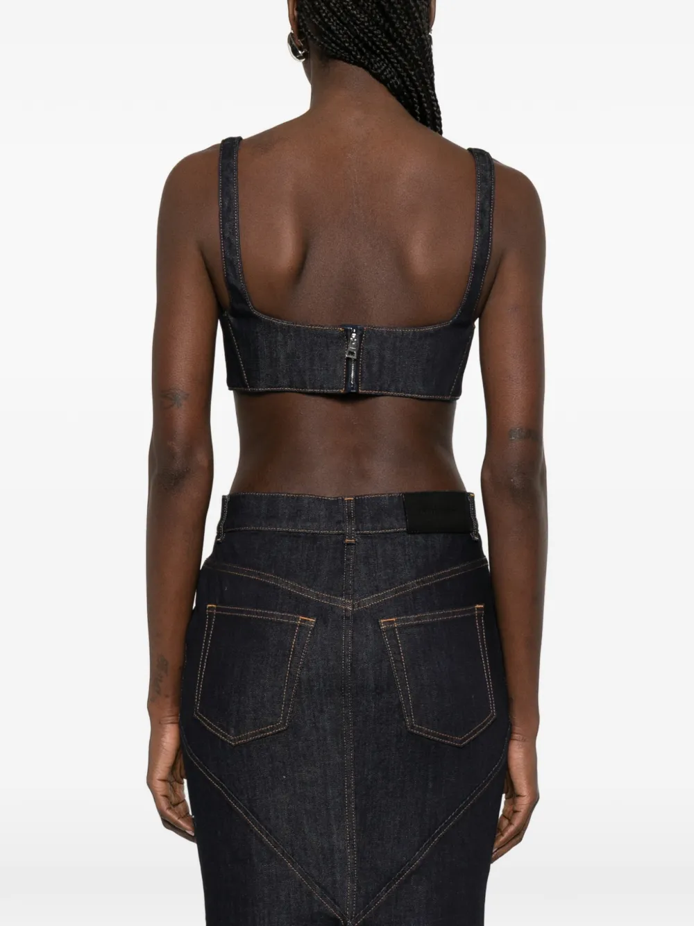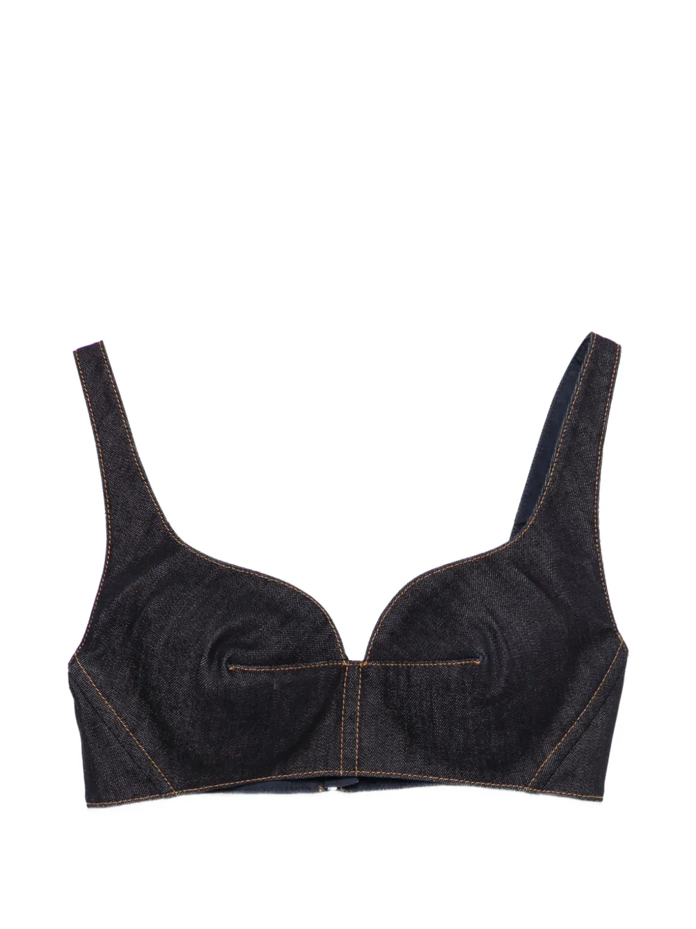 Синий топ без рукавов с отделкой по швам