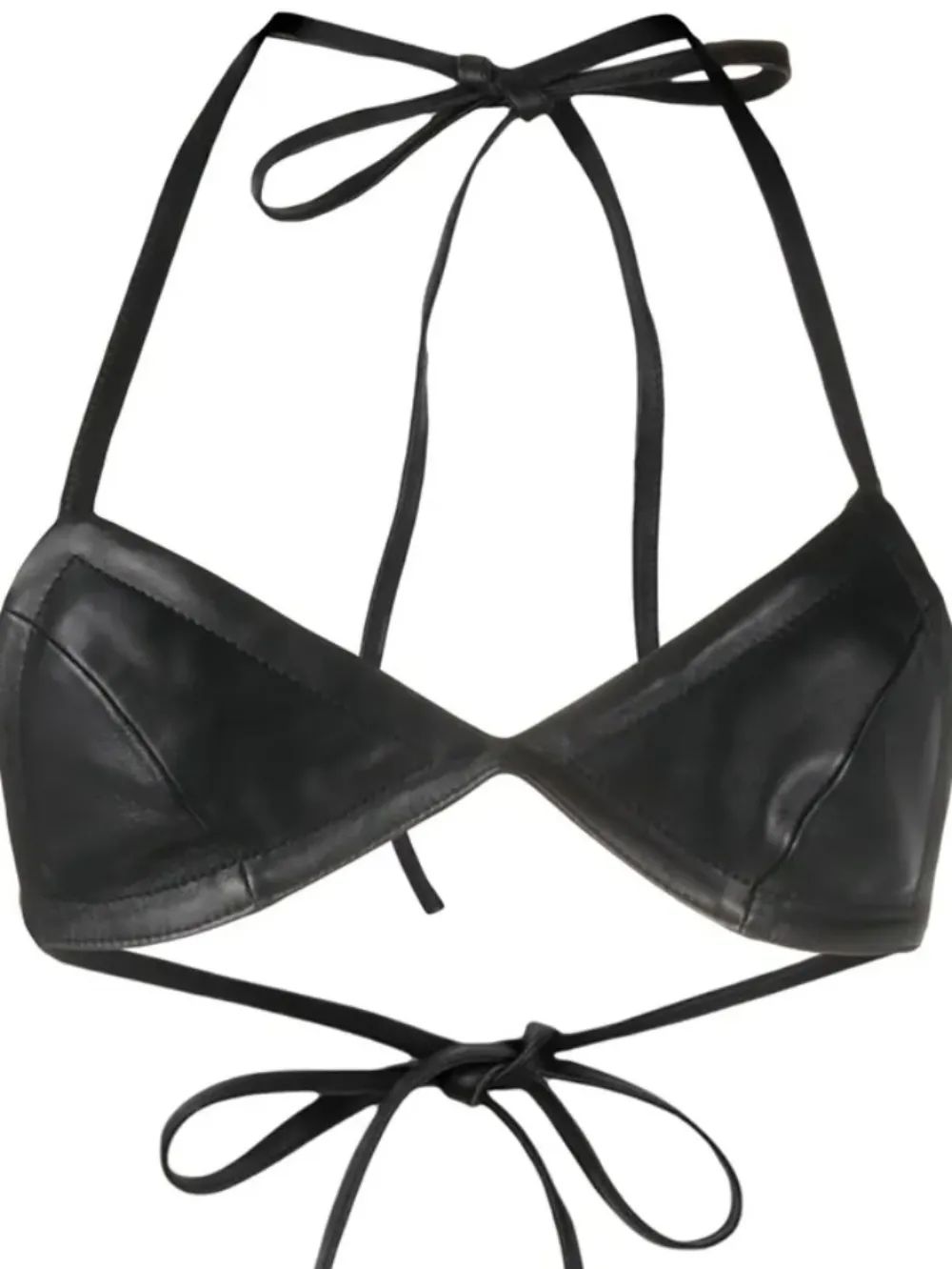 Топ с треугольными чашками от Off-White. Застежка на завязке сзади и треугольный верх.