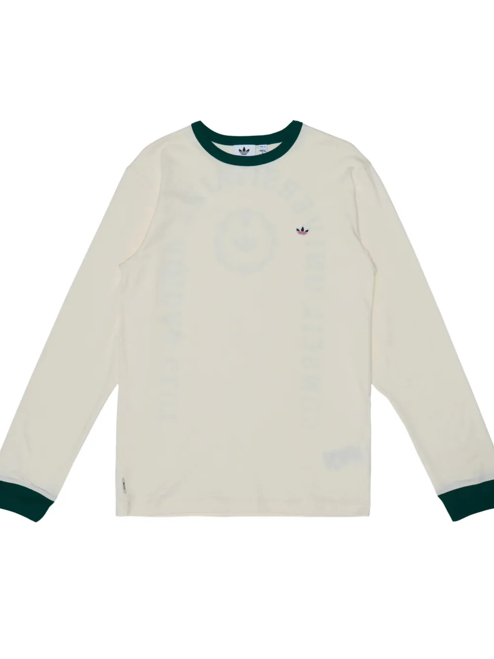 Кремово-белый лонгслив с контрастным воротником, длинными рукавами, логотипом и текстовым принтом