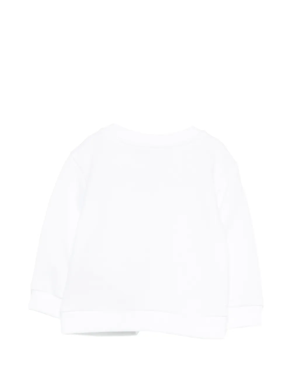 Белый свитшот с принтом логотипа, круглым вырезом, длинными рукавами и украшением в виде пуговиц