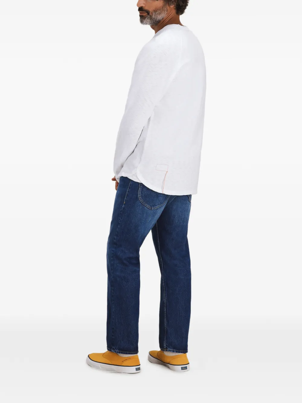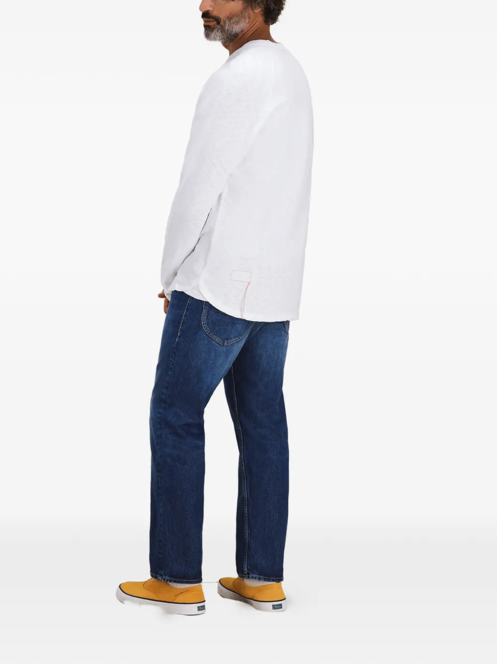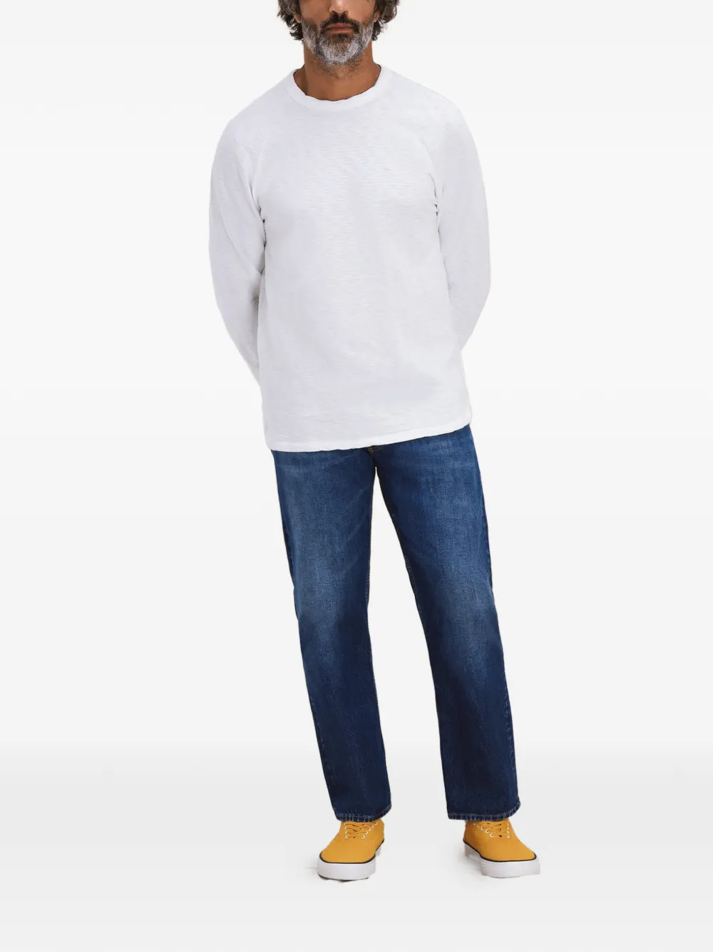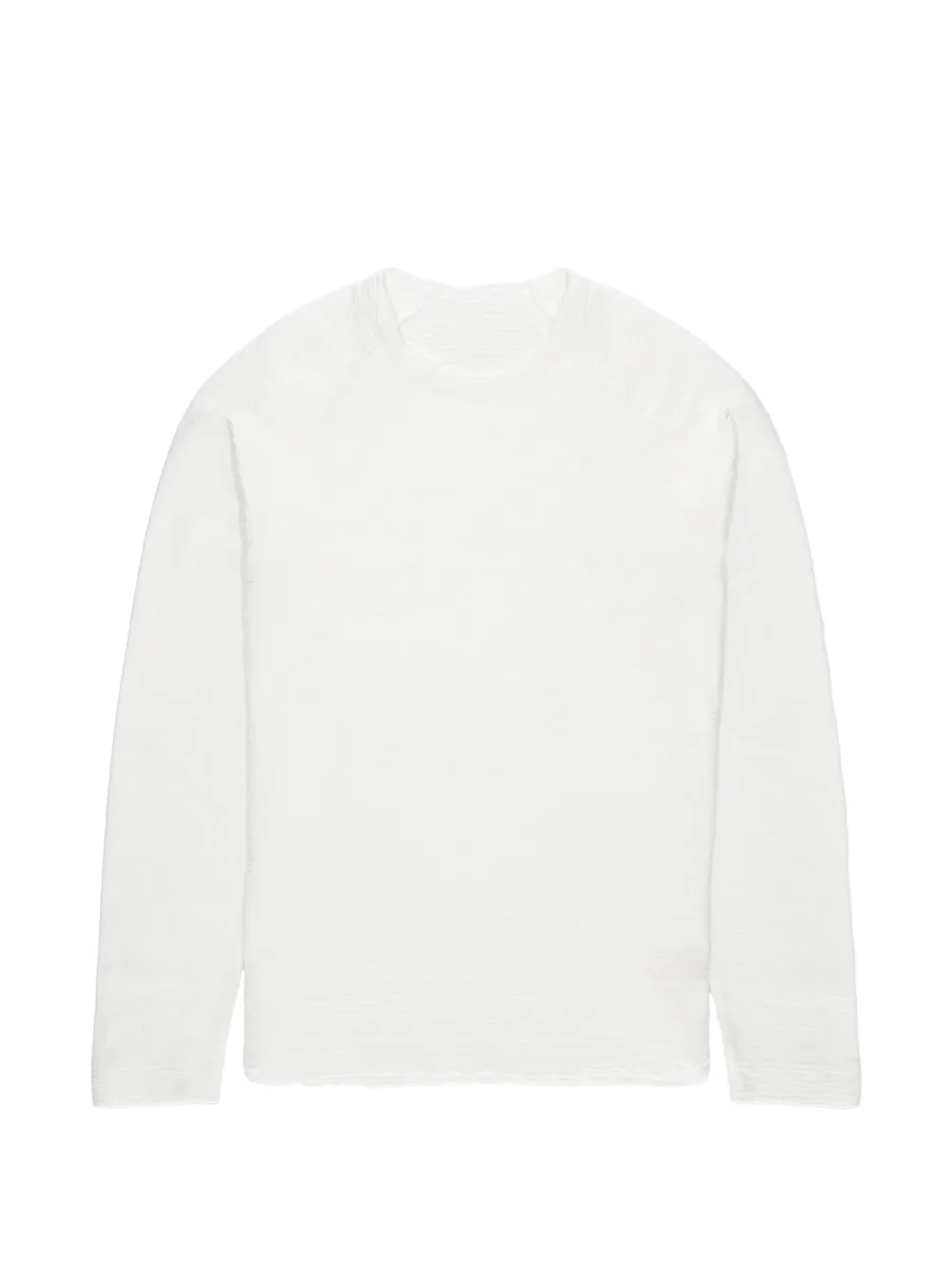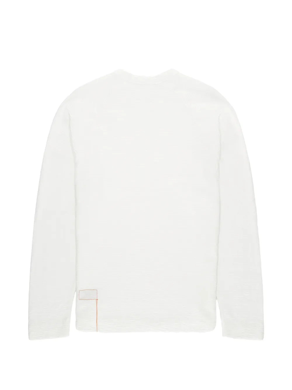Белый лонгслив с круглым вырезом и нашивкой
