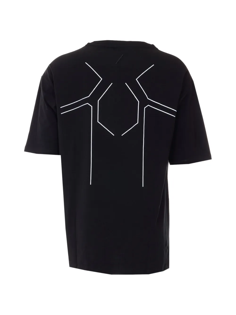 Черная футболка с круглым вырезом и геометрическим принтом на спине