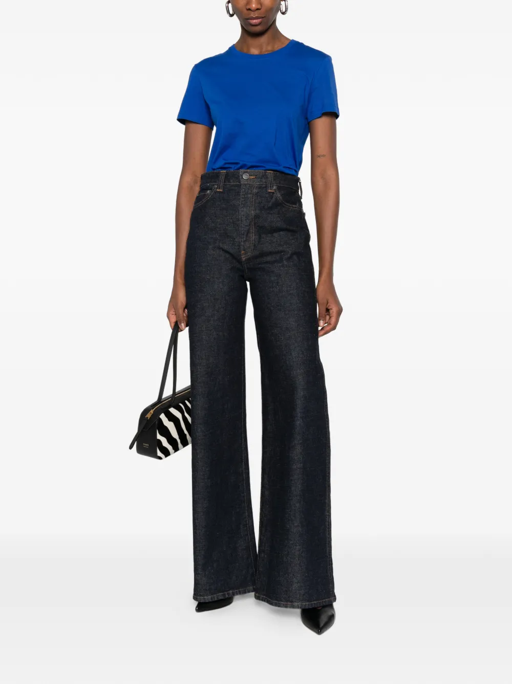 Ярко-синяя футболка с круглым вырезом и короткими рукавами